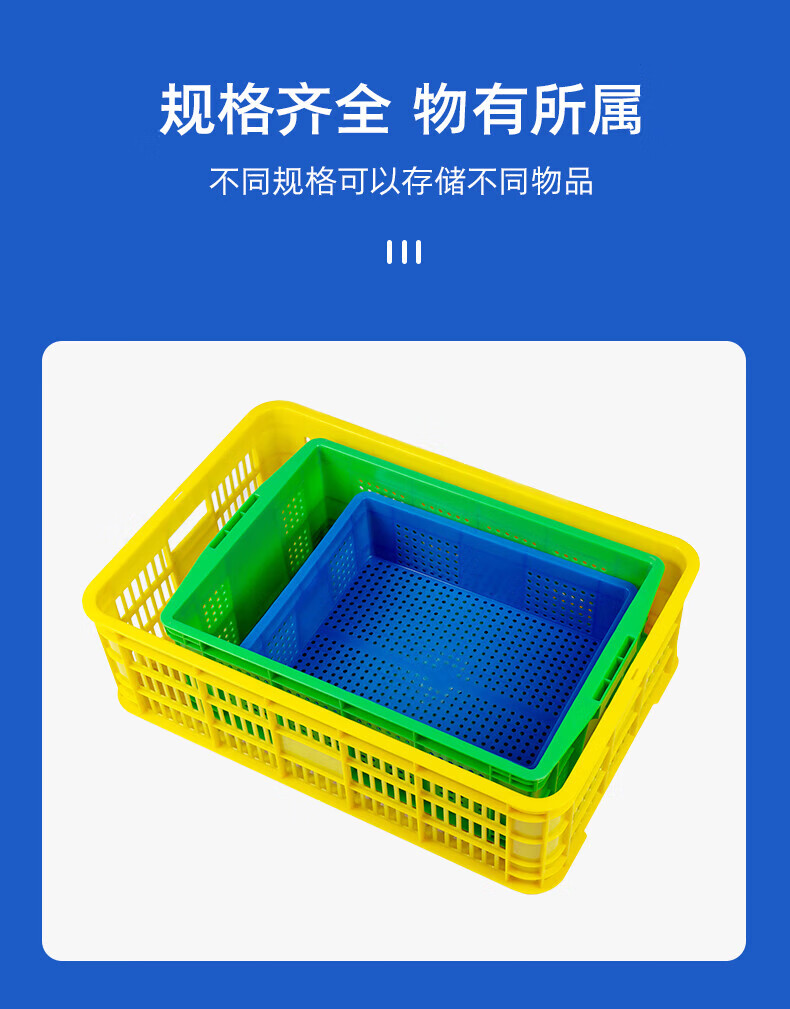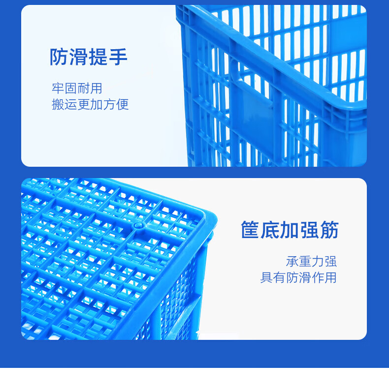 Baigang blue plastic basket turnover basket fruit and vegetable storage basket logistics express sorting basket long hole LH-KB4