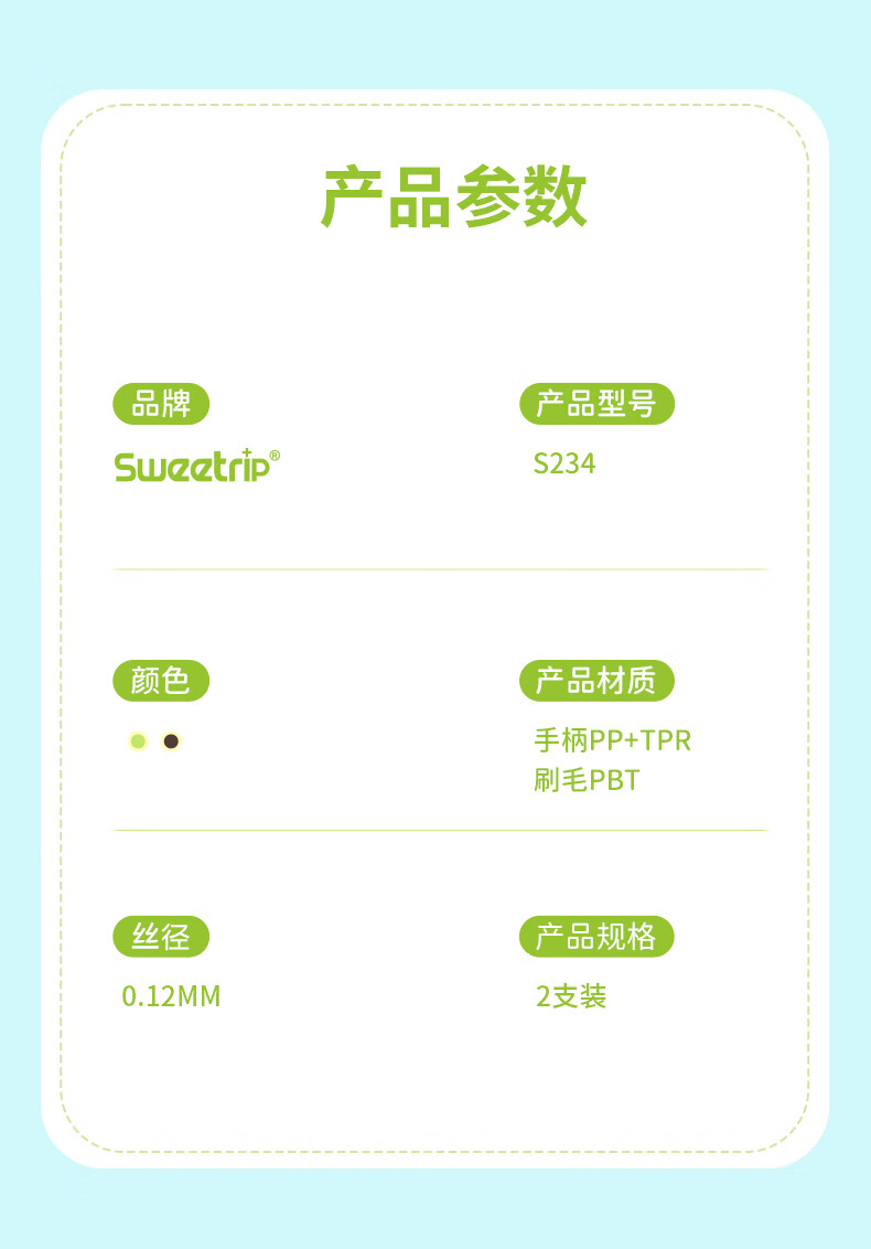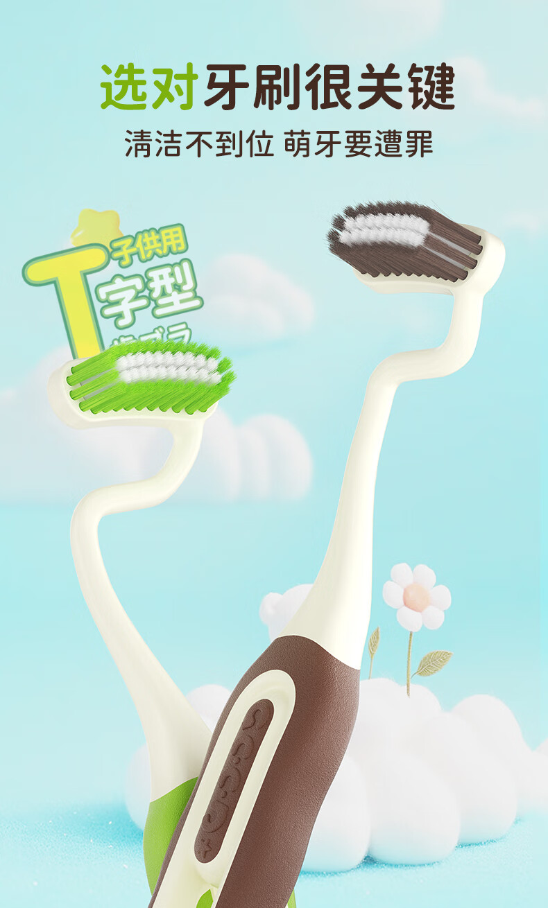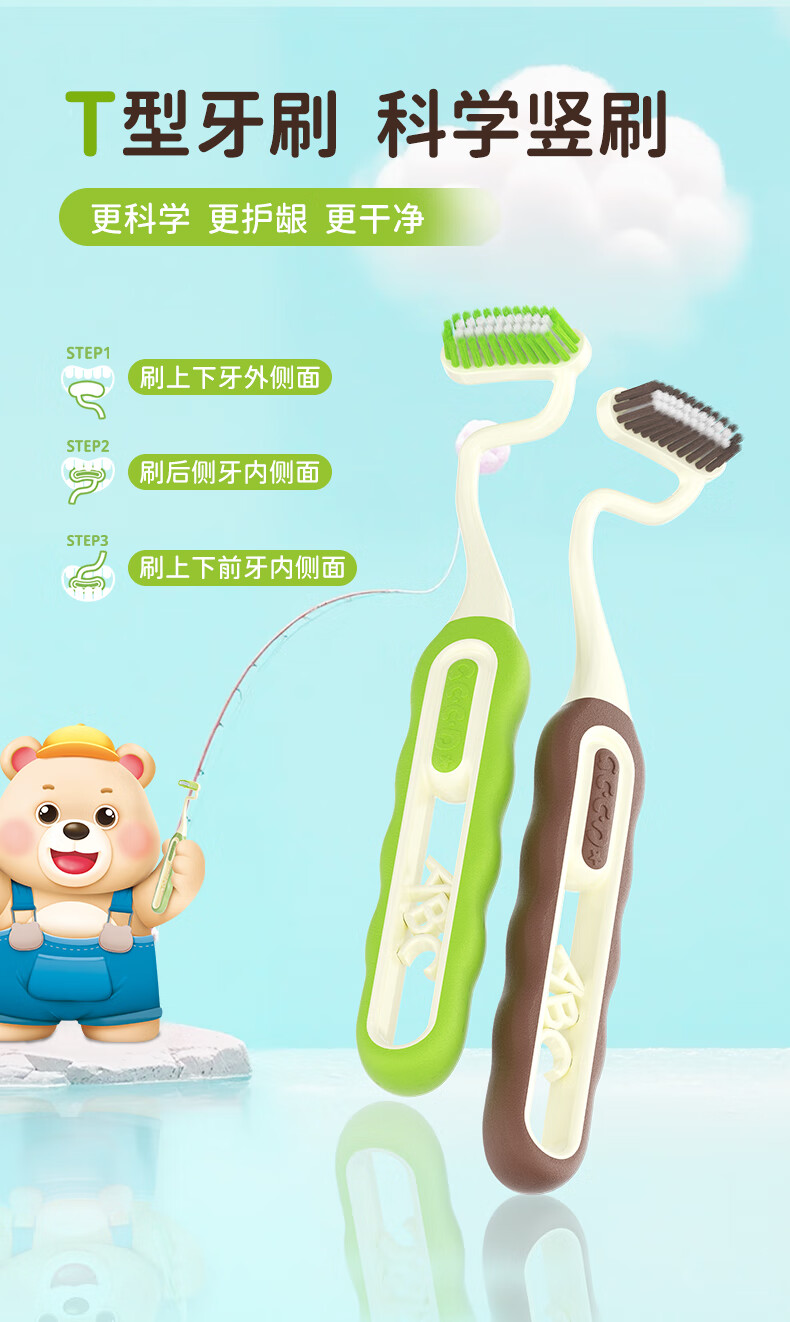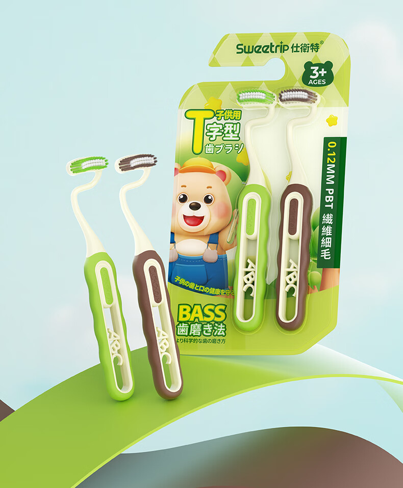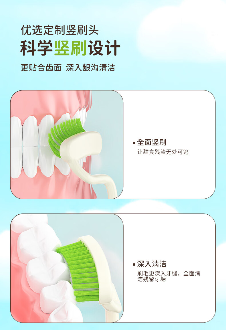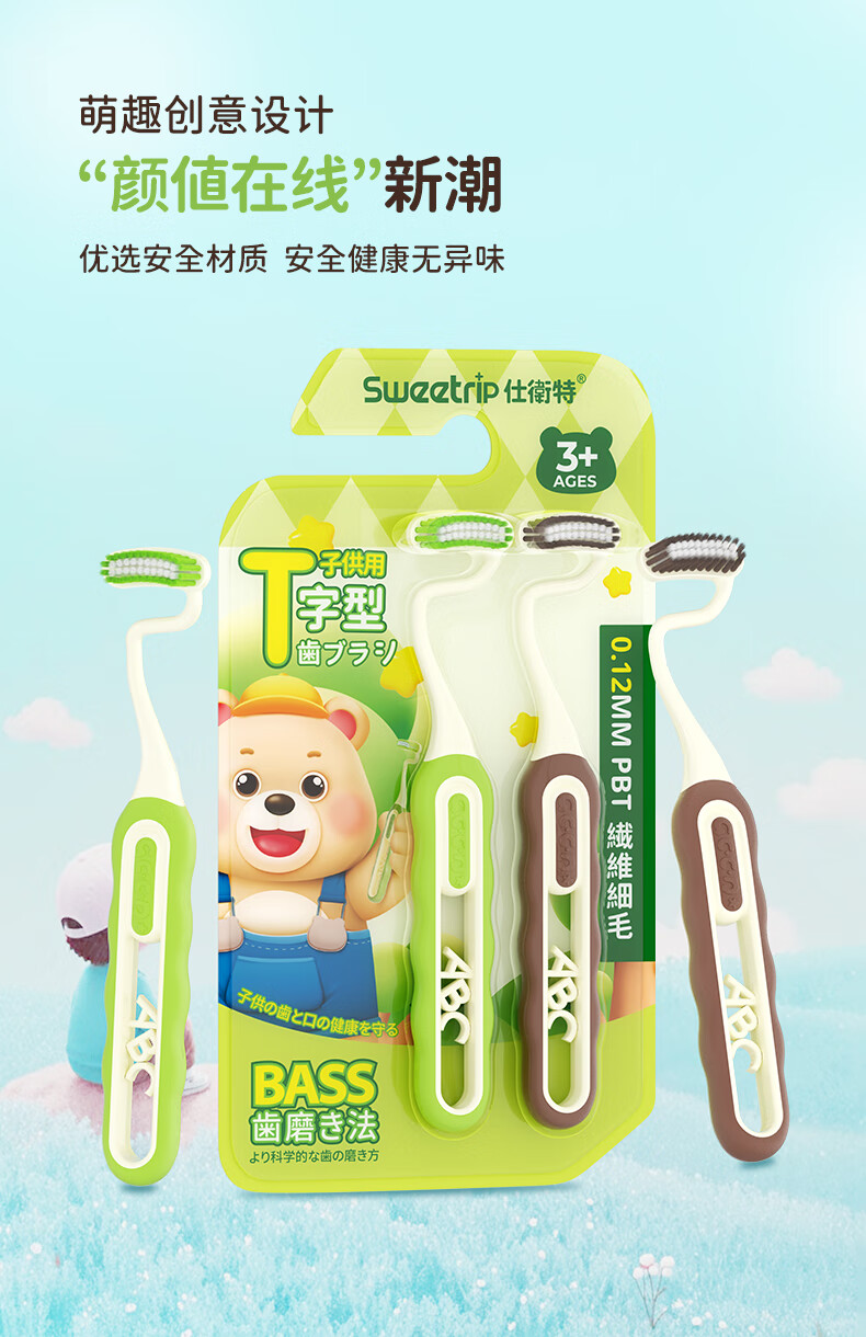 Sweetrip children's soft-bristled toothbrush S-shaped vertical brush T-shaped toothbrush scientific vertical brush 6-12 years old tooth changing period 2 pieces