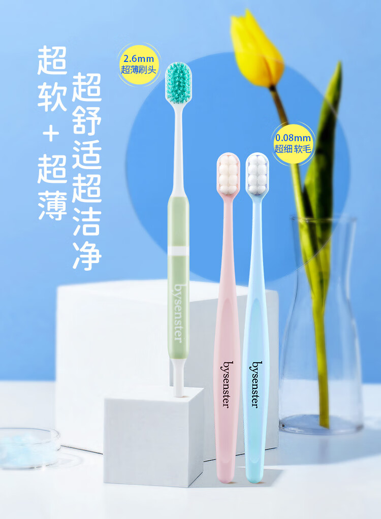 Bisute 10,000 soft-bristle toothbrushes for sensitive gums, suitable for adults, household size, 3 pack