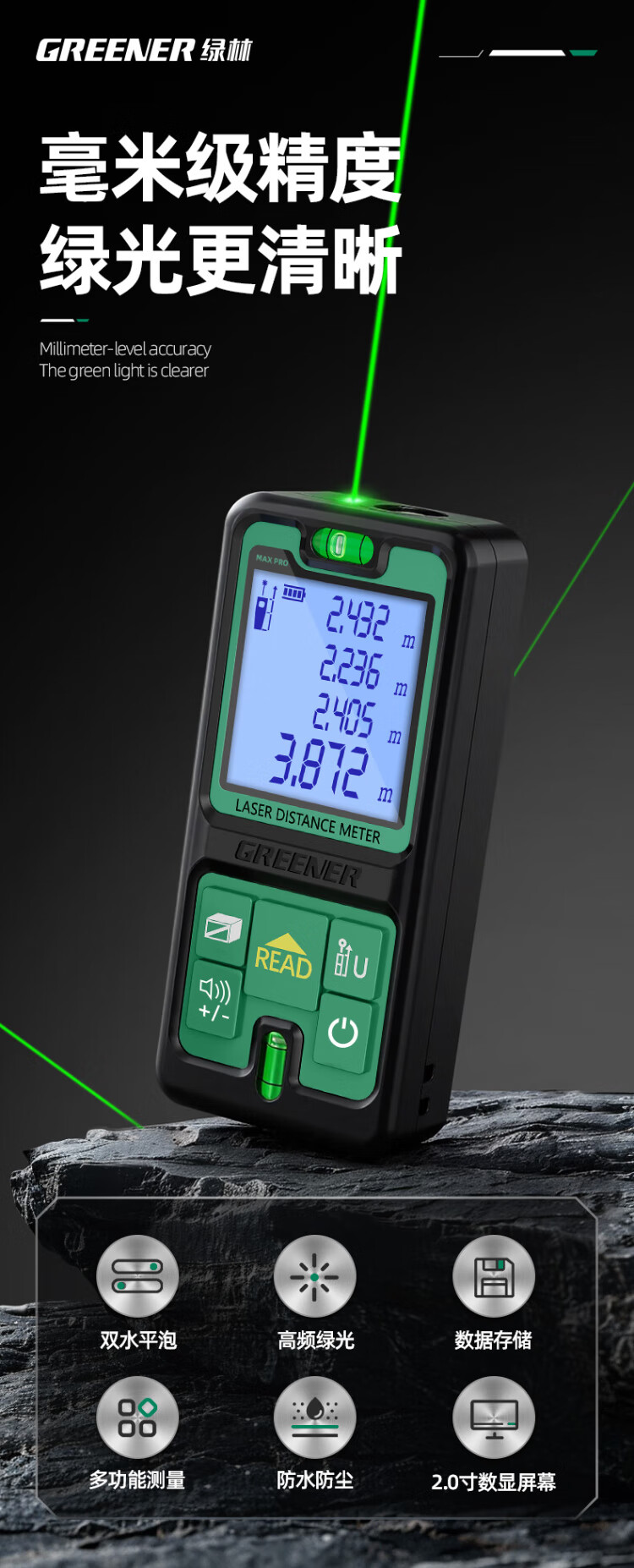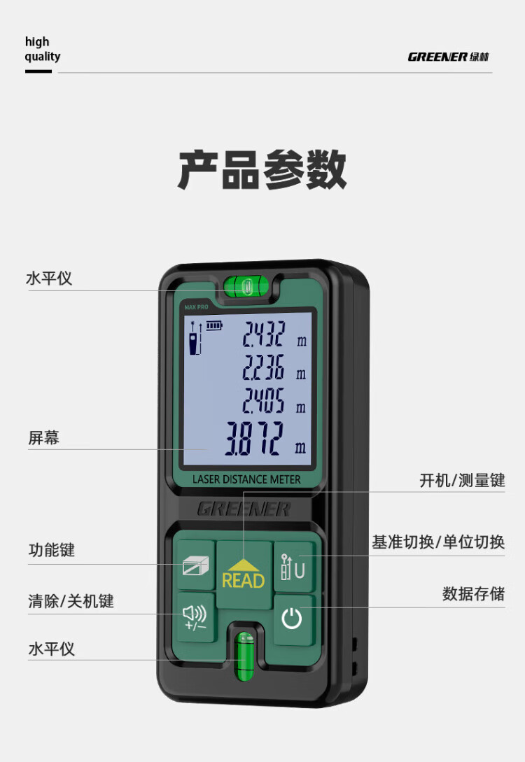 Green forest green light distance meter outdoor handheld infrared high-precision electronic laser ruler outdoor room measuring instrument 70 meters