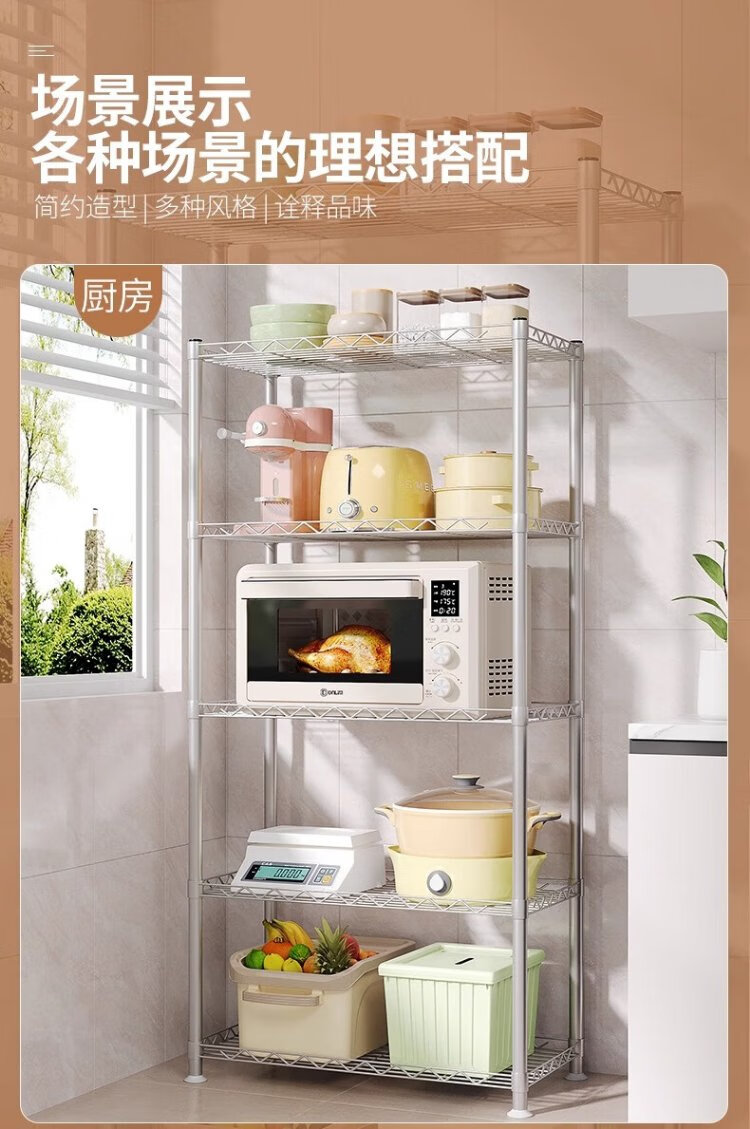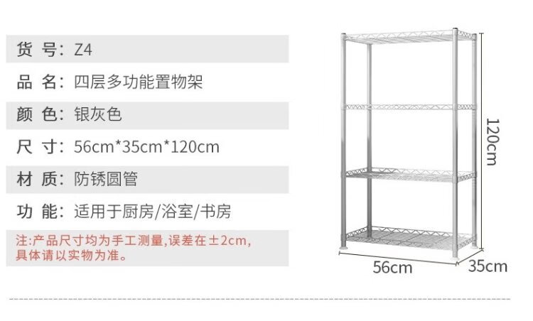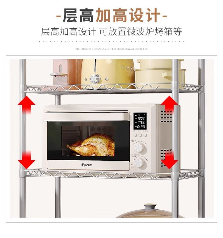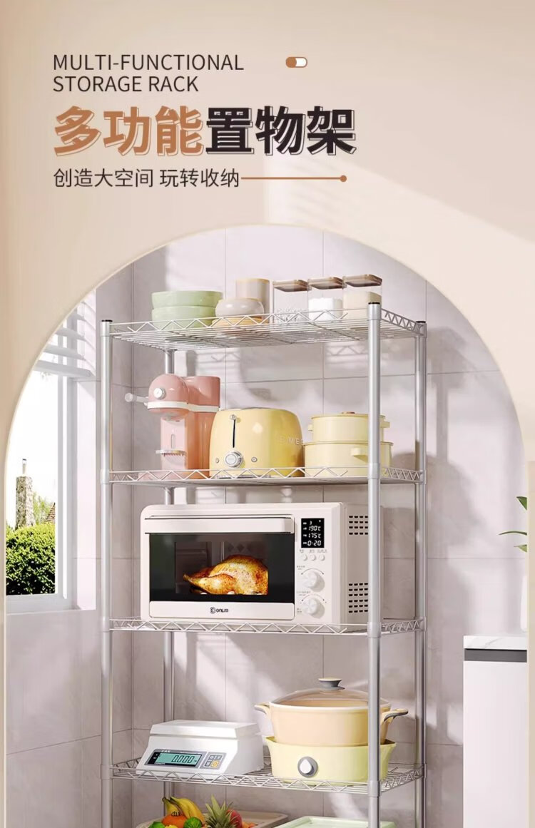 Wojia storage rack kitchen floor-standing multi-layer storage rack household microwave oven rack pot and bowl rack spice rack storage rack 4 layers