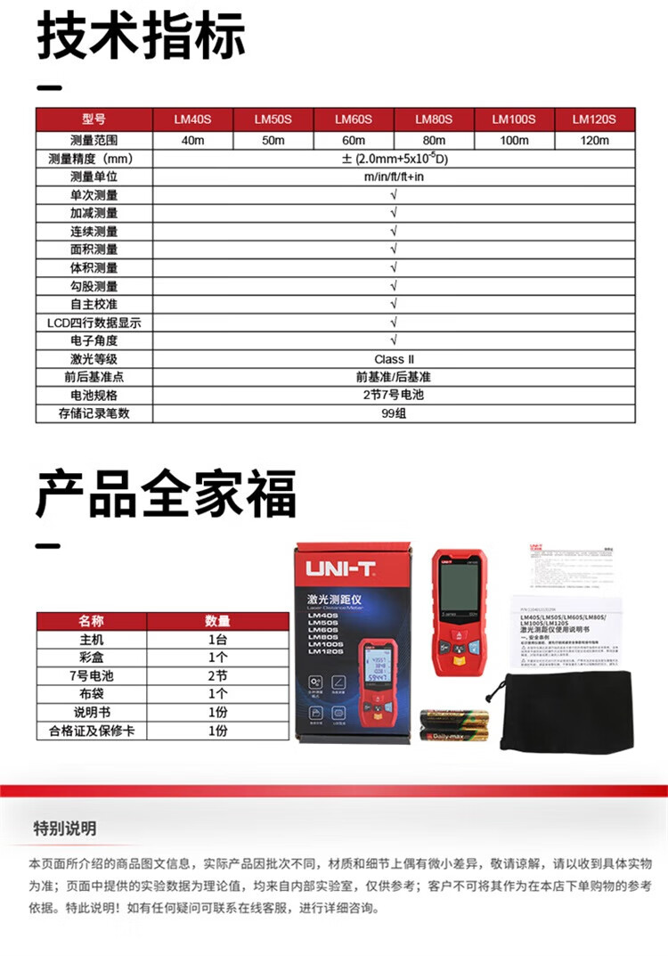 Uni-T LM60s infrared rangefinder handheld laser high-precision electronic ruler laser ruler measuring instrument room measuring instrument home