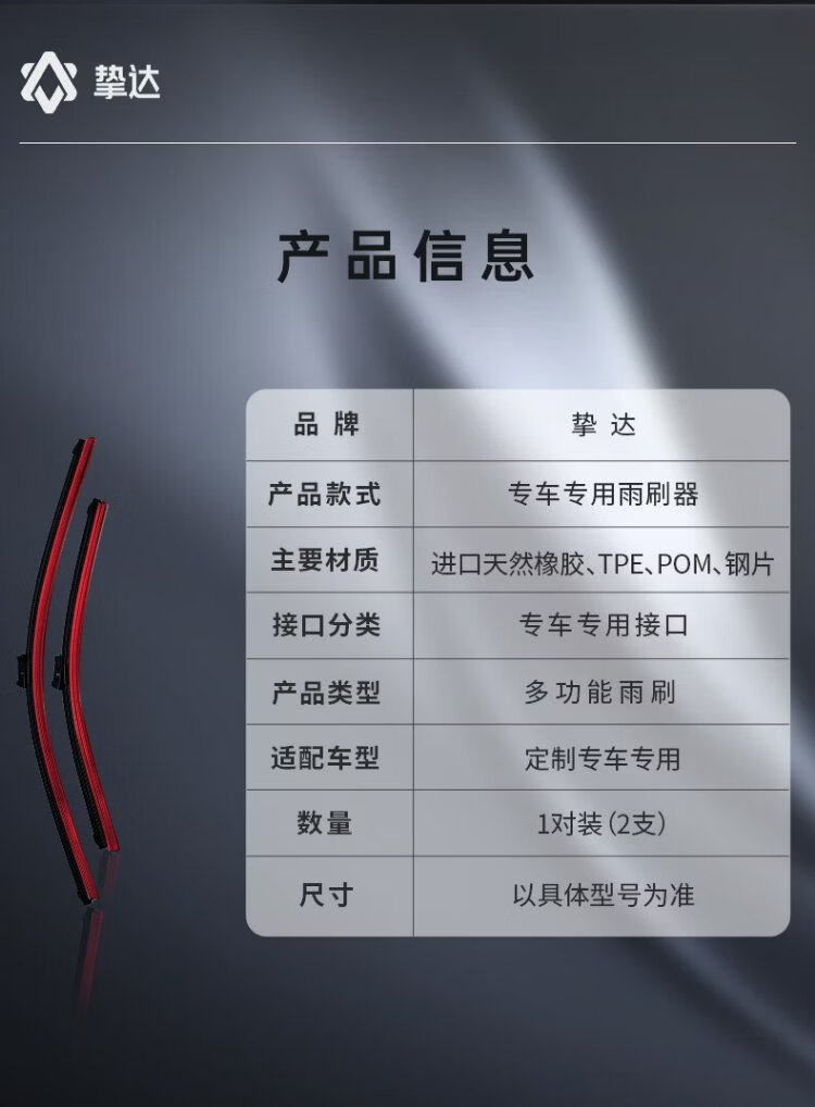 Zhida wiper, special wiper for new energy vehicles, silent custom-made natural 3A rubber strip, suitable for Xiaopeng M03