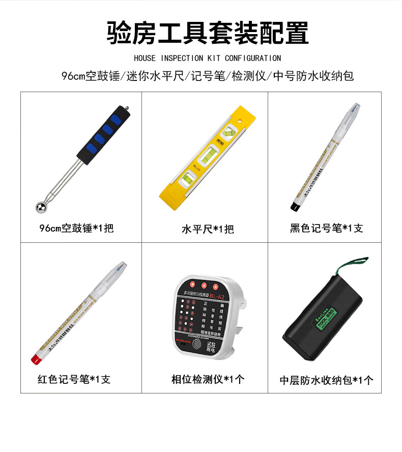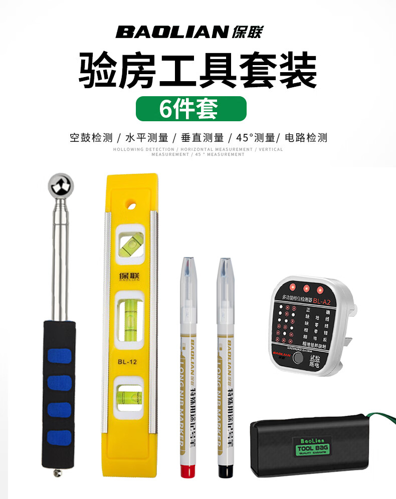 Baolian home inspection set empty drum hammer level ruler marker pen 6-piece set for floor and wall tile inspection and collection room