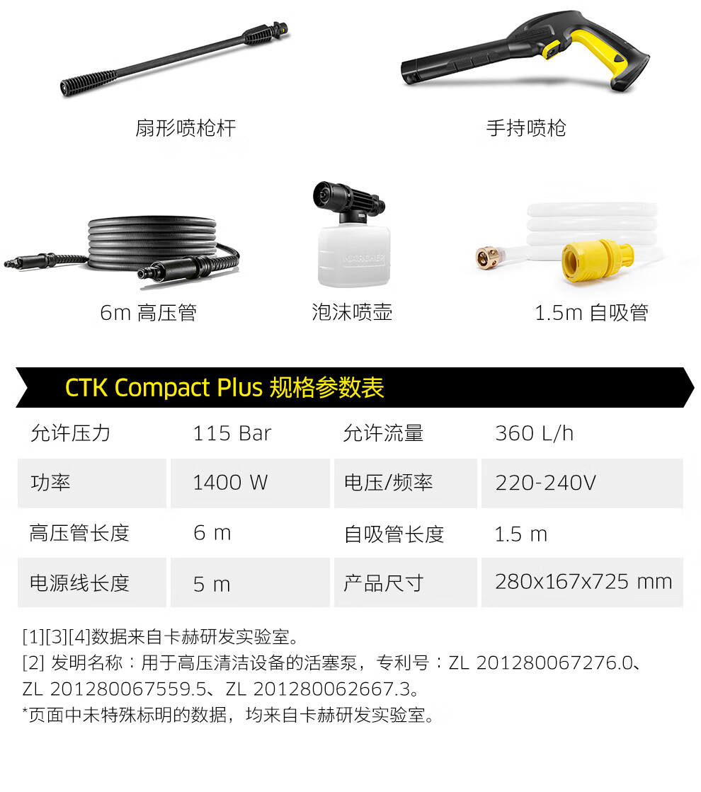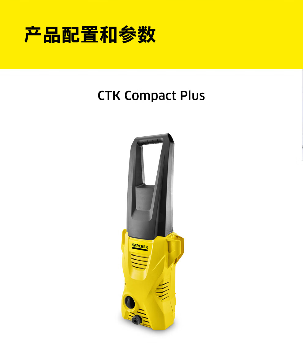 KARCHER German Kach high-pressure spray gun small household water gun cleaning machine high-pressure water gun high-pressure flushing 1400W CTK Compact Plus
