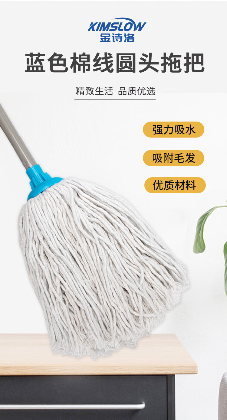 Jinshiluo Hardcore White Cotton Thread Round Head Mop 2-piece Set Hotel Shopping Mall Absorbent Mop KT-114
