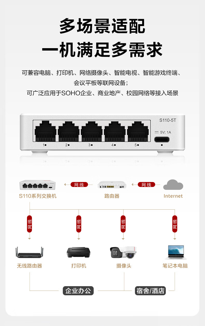 Huawei Kunling S110-5T with service 5-port Gigabit switch switch small dormitory network monitoring network splitter