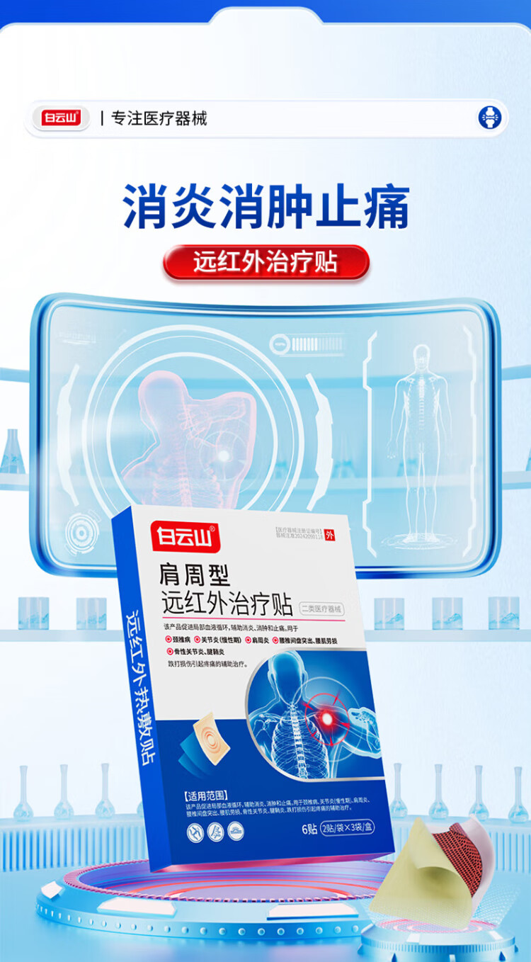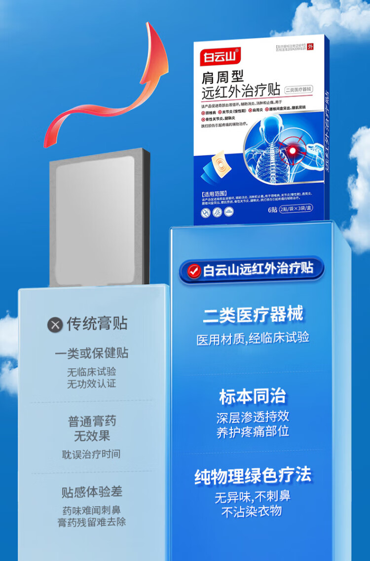 Baiyunshan Shoulder Peripheral Far Infrared Treatment Patch Shoulder Frozen Arthritis Patch Shoulder and Neck Hot Compress to Relieve Shoulder Peripheral Strain and Shoulder Pain 3 Boxes