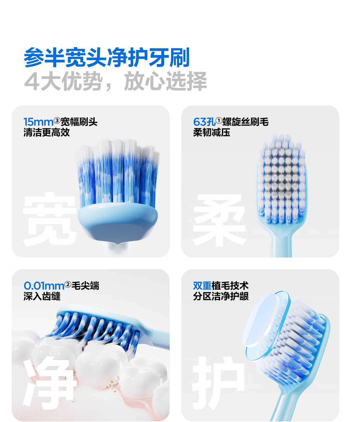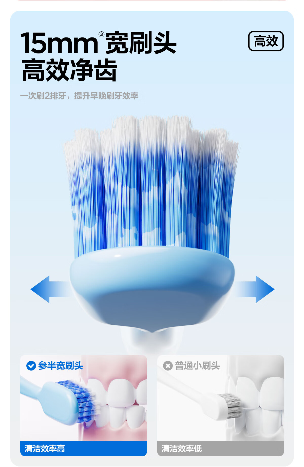 Semi-wide head cleaning toothbrush 2 pieces, widened brush head, soft-bristled adult couple toothbrush (pink blue)