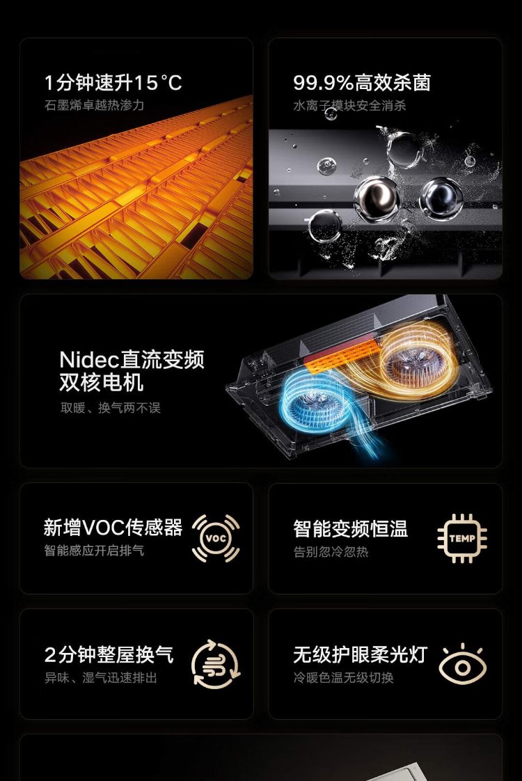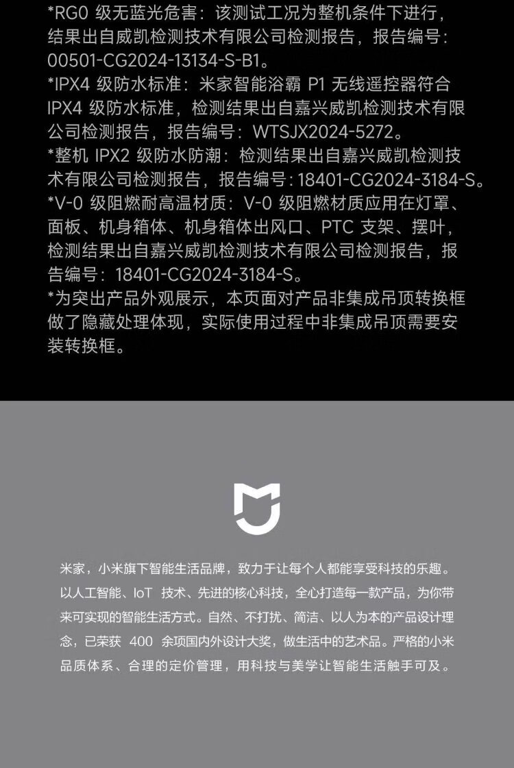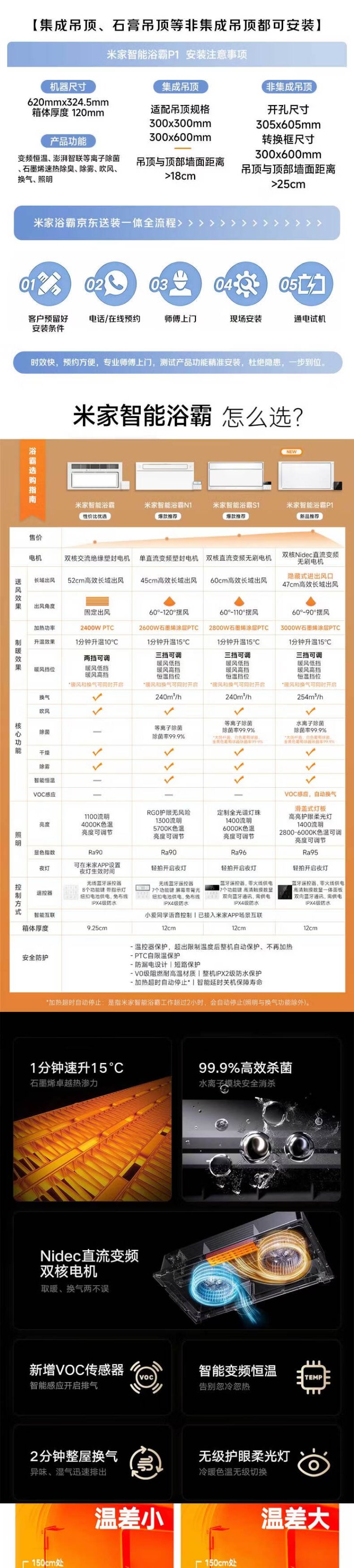 MIJIA Smart Bath Heater Fully Embedded Frequency Converter Constant Temperature Series Warm Air Intelligent Sterilization Lighting Exhaust Integrated P1