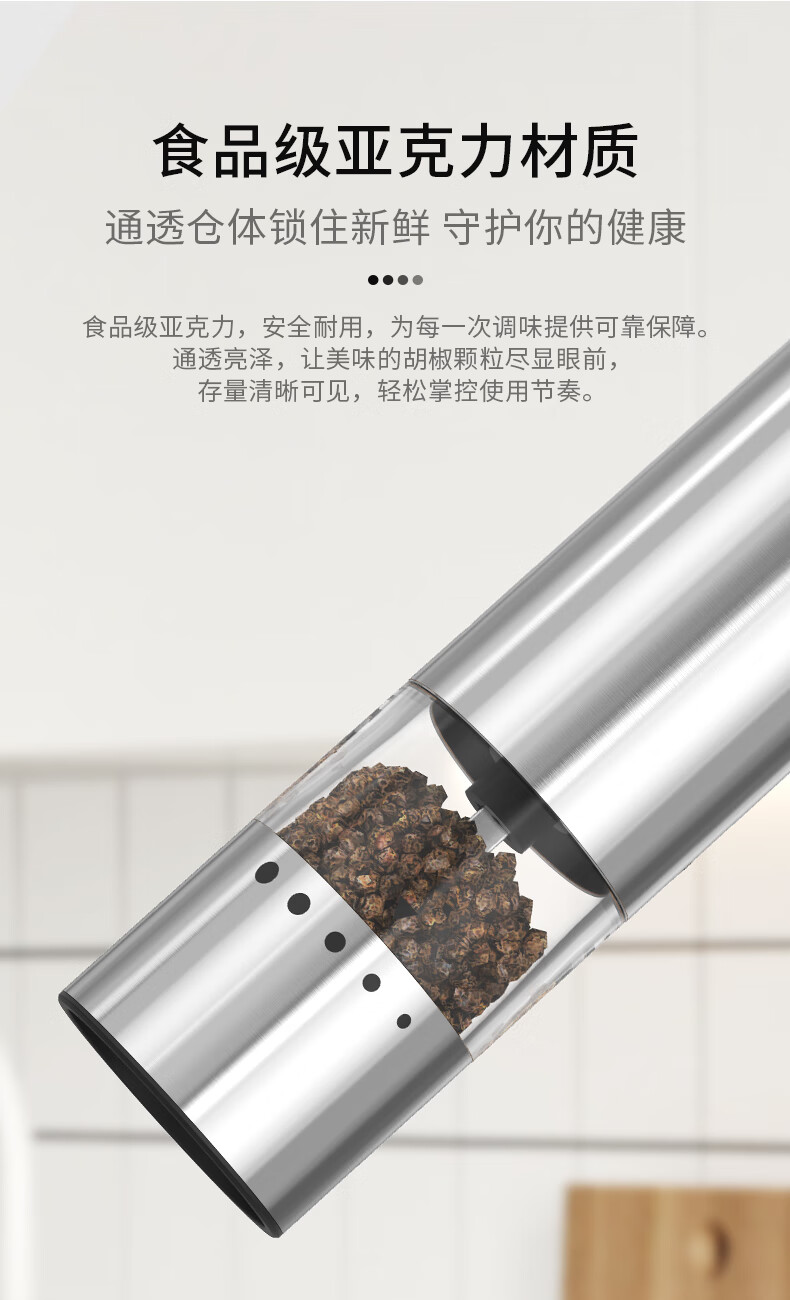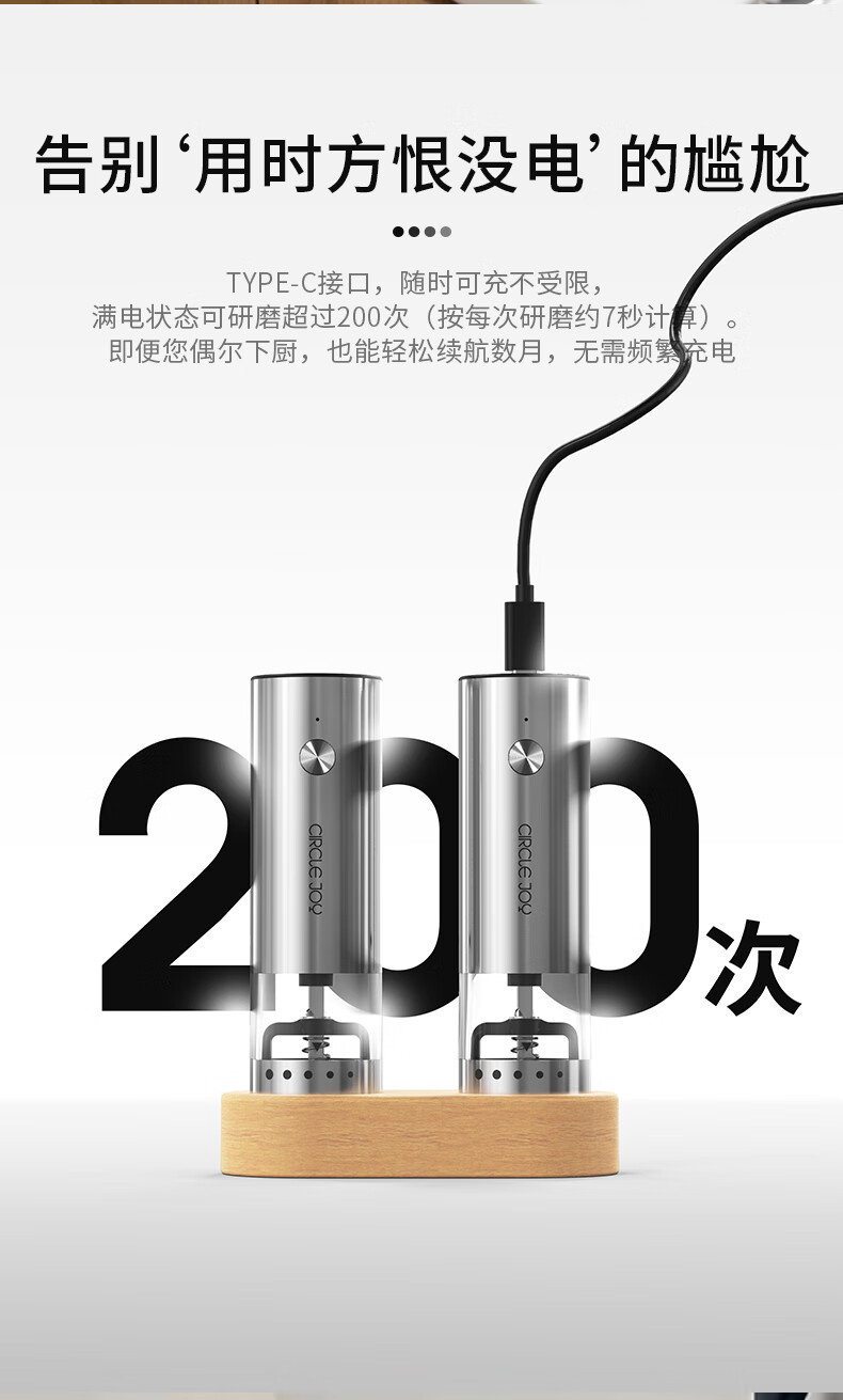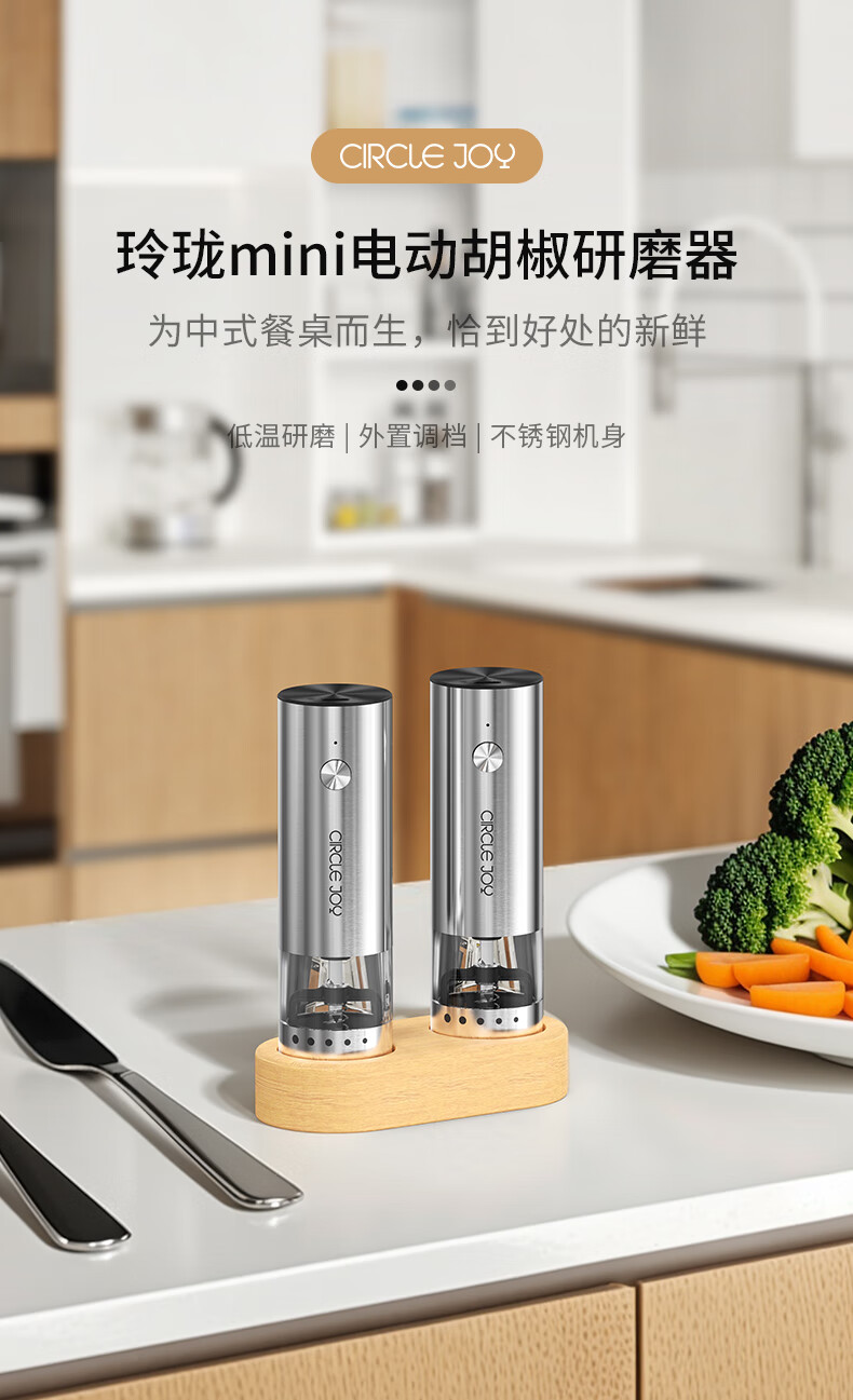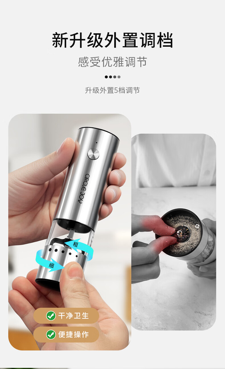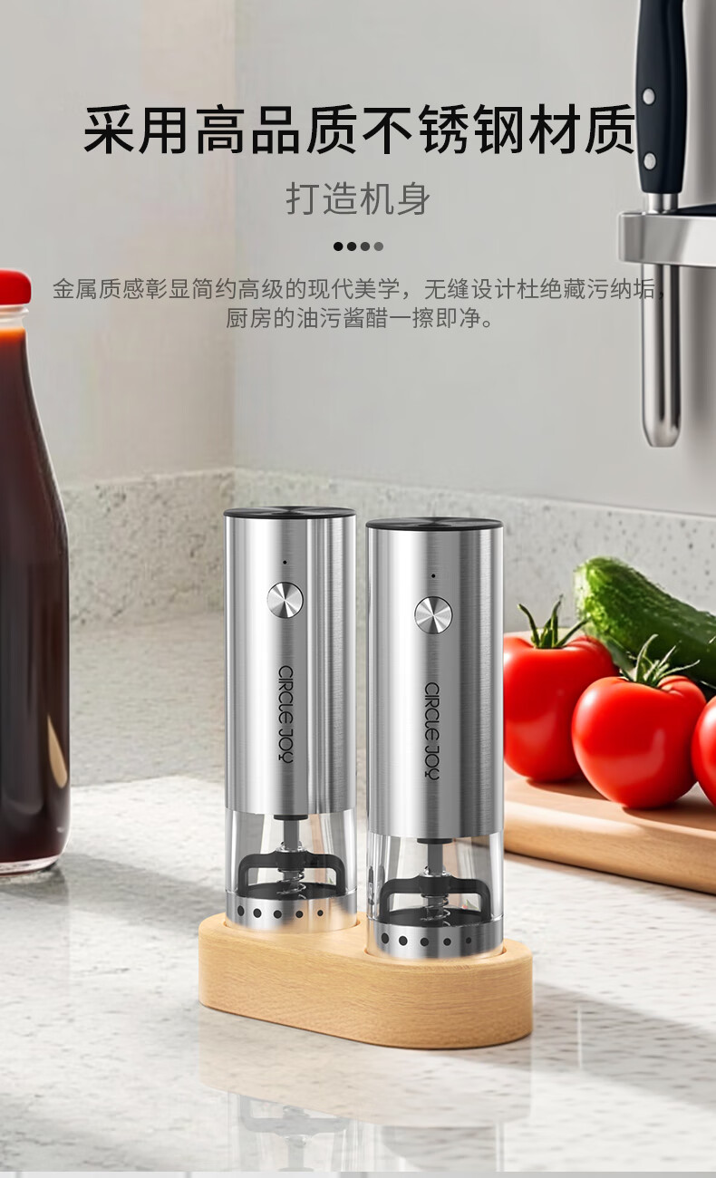 Circle Joy Mini Stainless Steel Electric Pepper Grinder Rechargeable Household Pepper Sea Salt Grinding Bottle Seasoning Bottle Jar 2 Pack