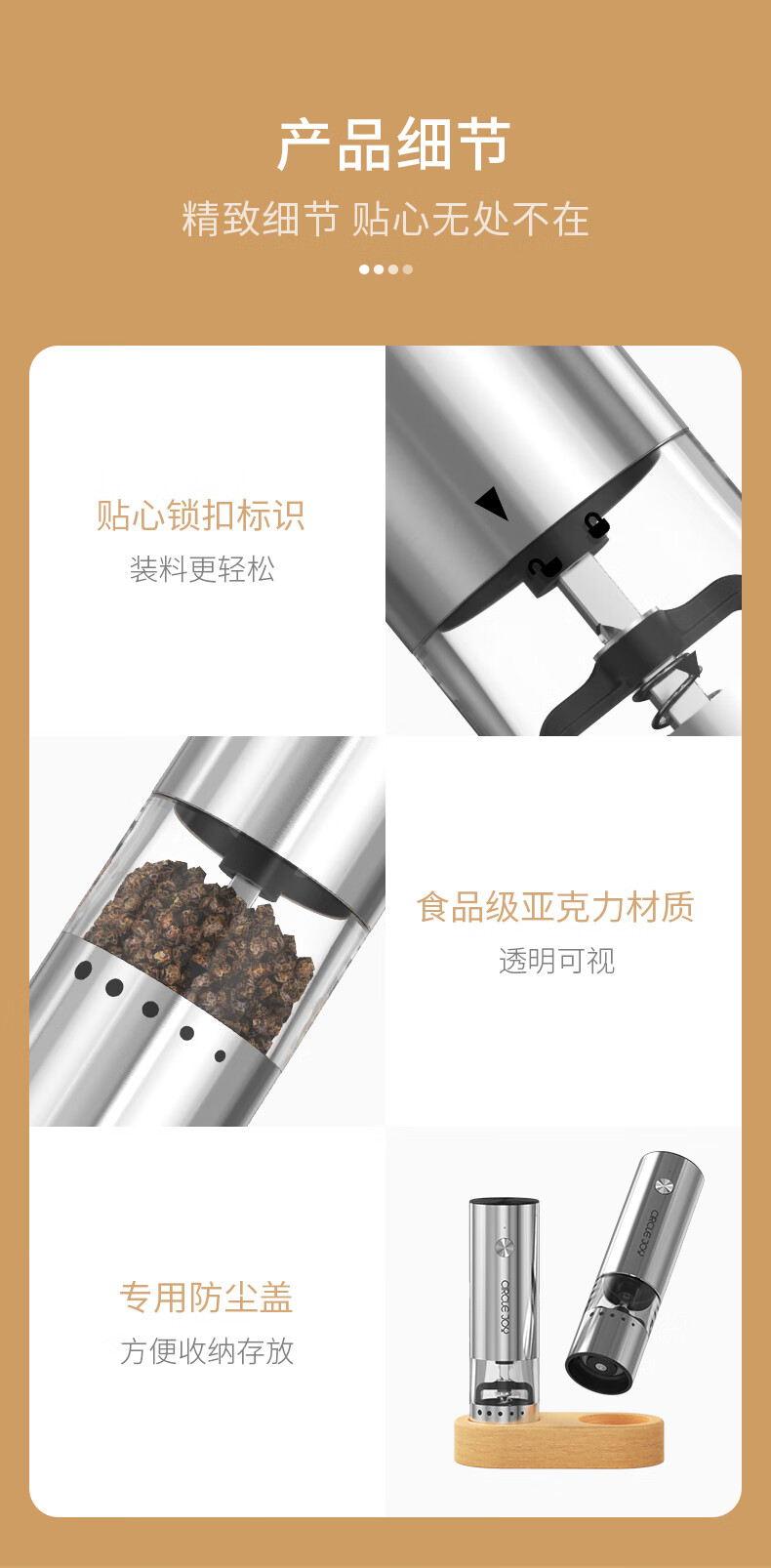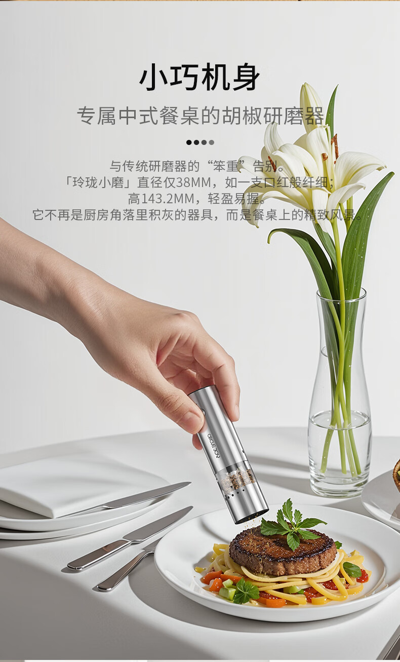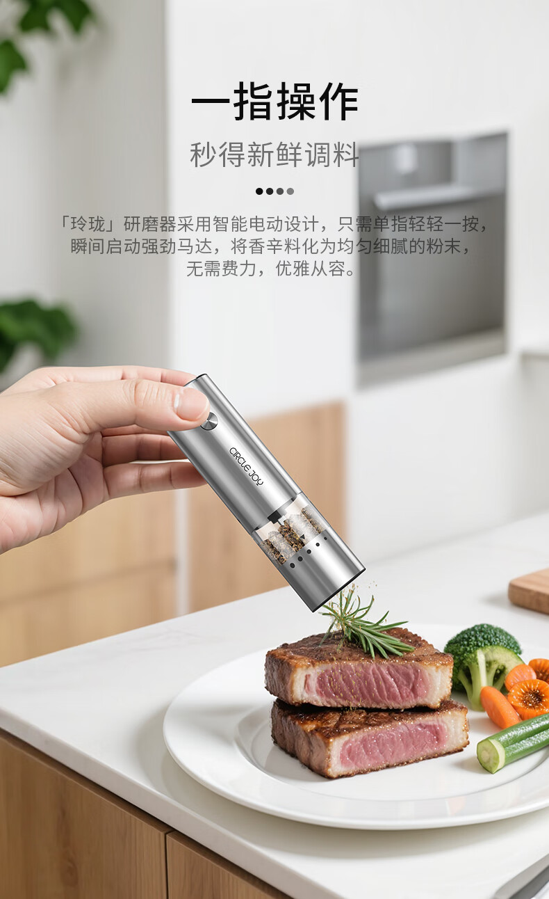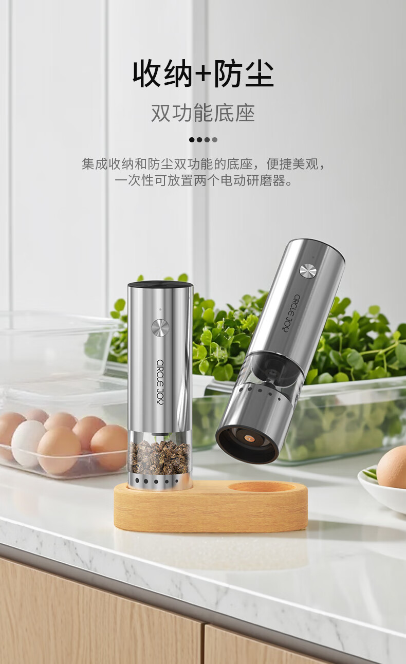 Circle Joy Mini Stainless Steel Electric Pepper Grinder Rechargeable Household Pepper Sea Salt Grinding Bottle Seasoning Bottle Jar 2 Pack