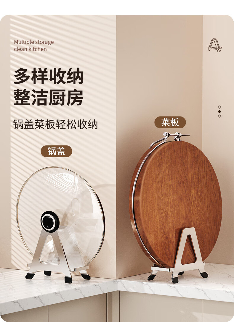 Newair 304 stainless steel cutting board storage rack, kitchen chopping board special multi-functional thickened pot cover and chopping board integrated storage rack