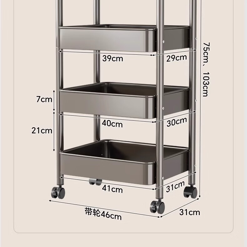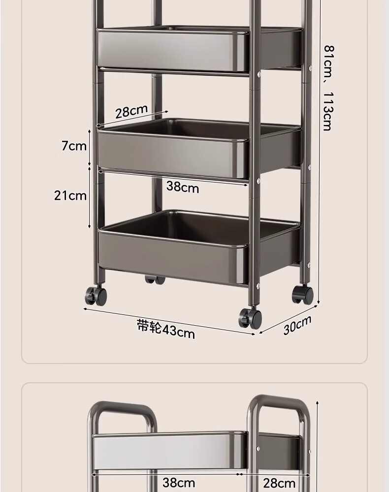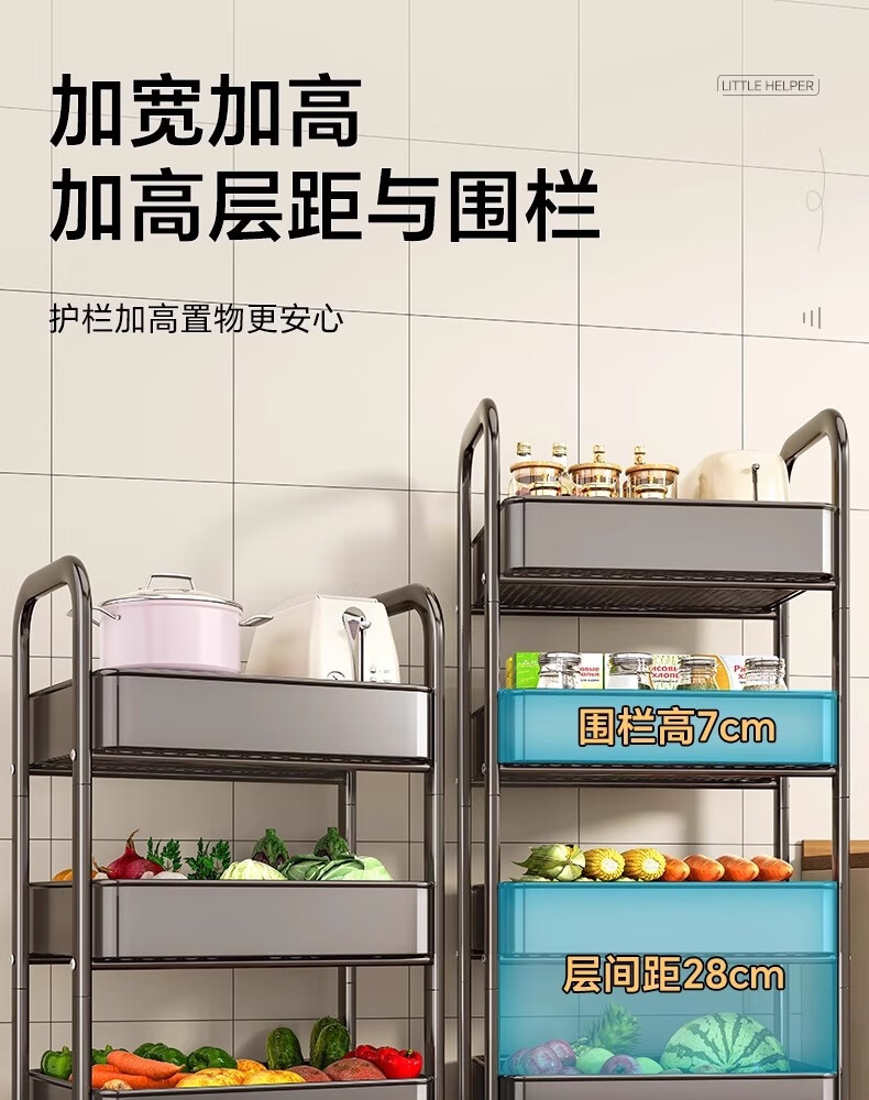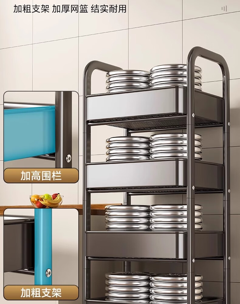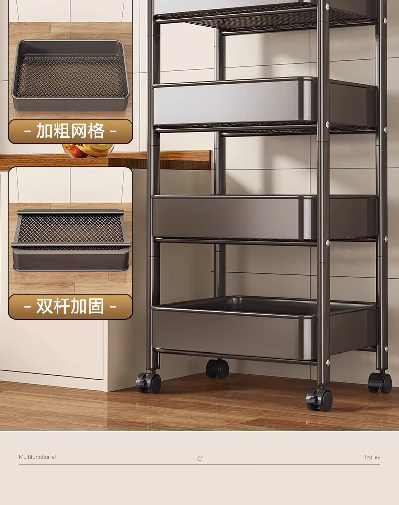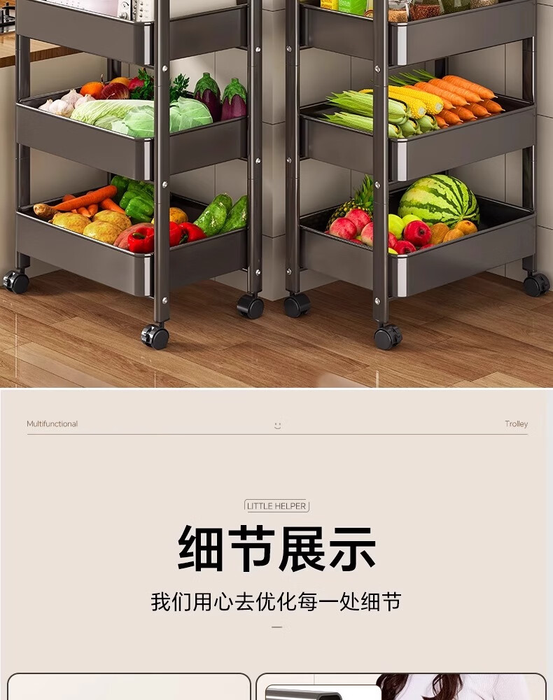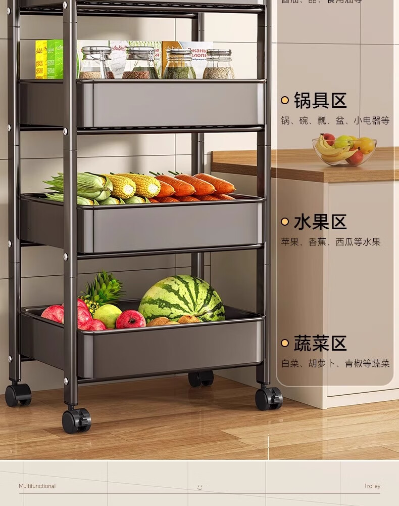 MUYA kitchen rack trolley floor-standing removable multi-layer shelf multi-functional fruit and vegetable basket storage rack