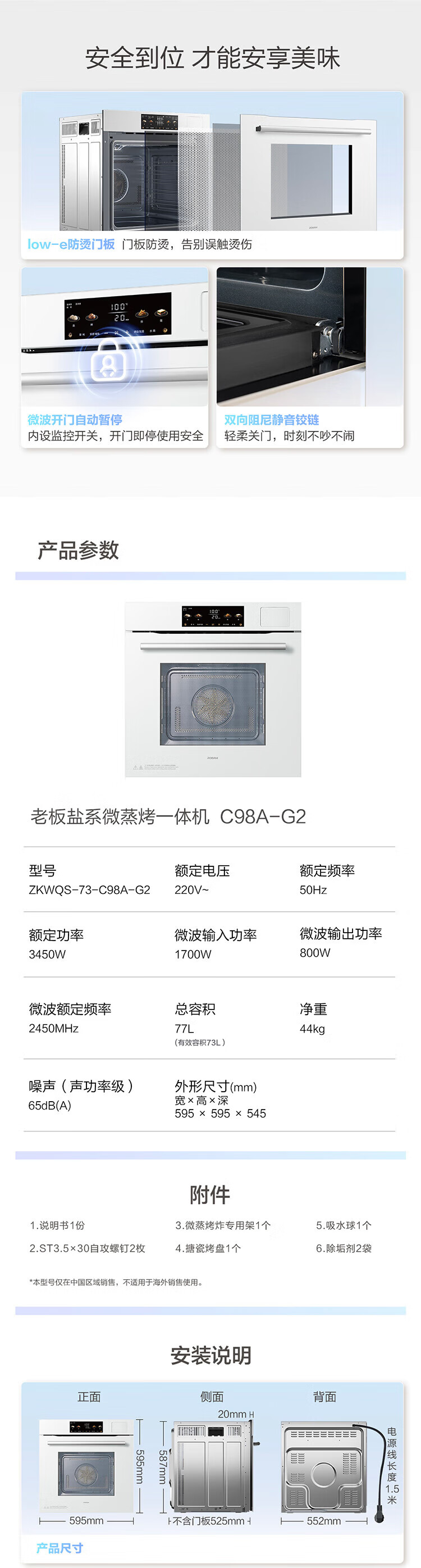 Robam 77L large capacity salt series G2 micro-steaming and steaming oven all-in-one built-in color screen enamel household microwave oven G2 white