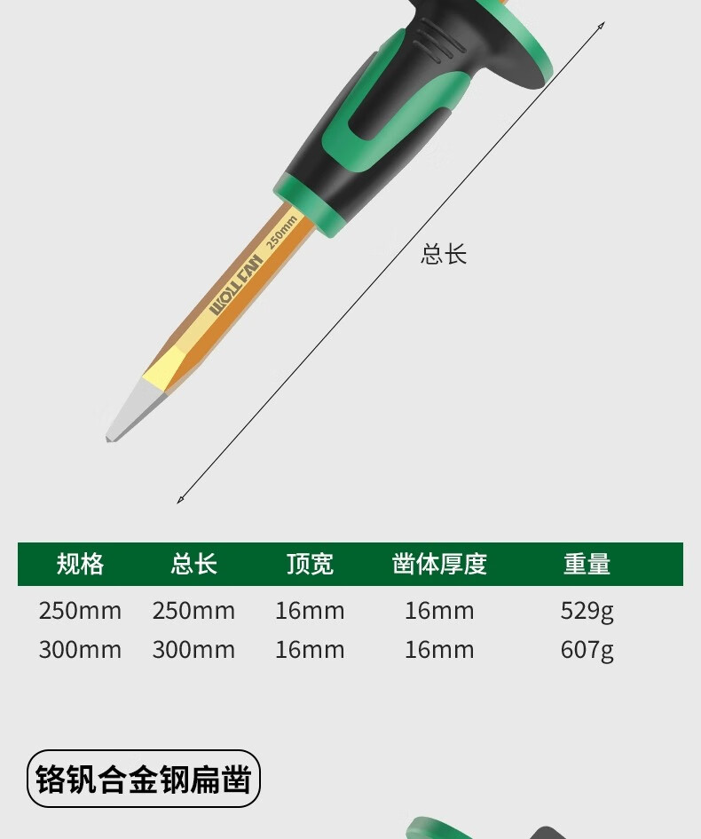 Wolfan alloy steel chisel, flat shovel, special chisel drill for iron, concrete stone breaking artifact, handmade hammer