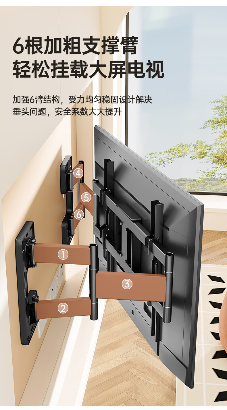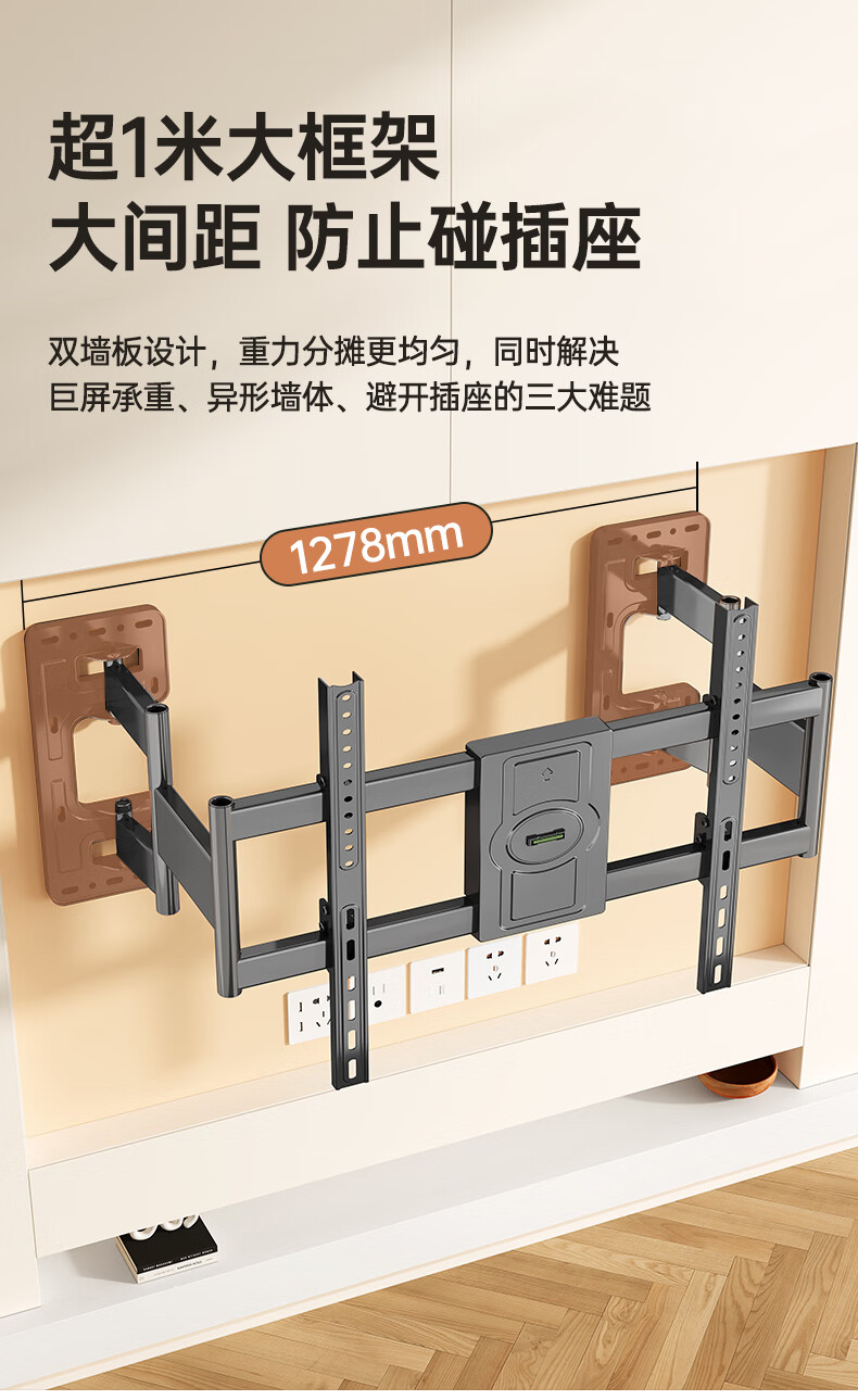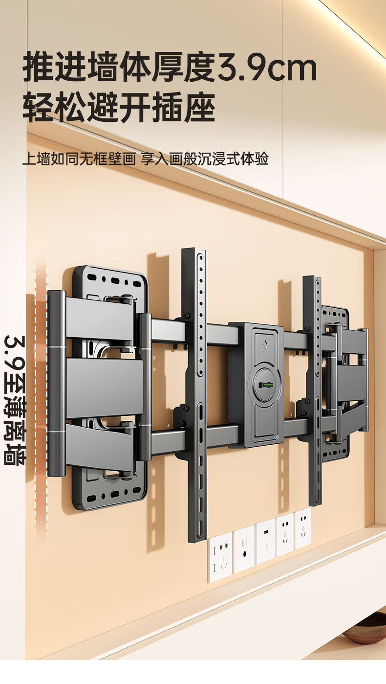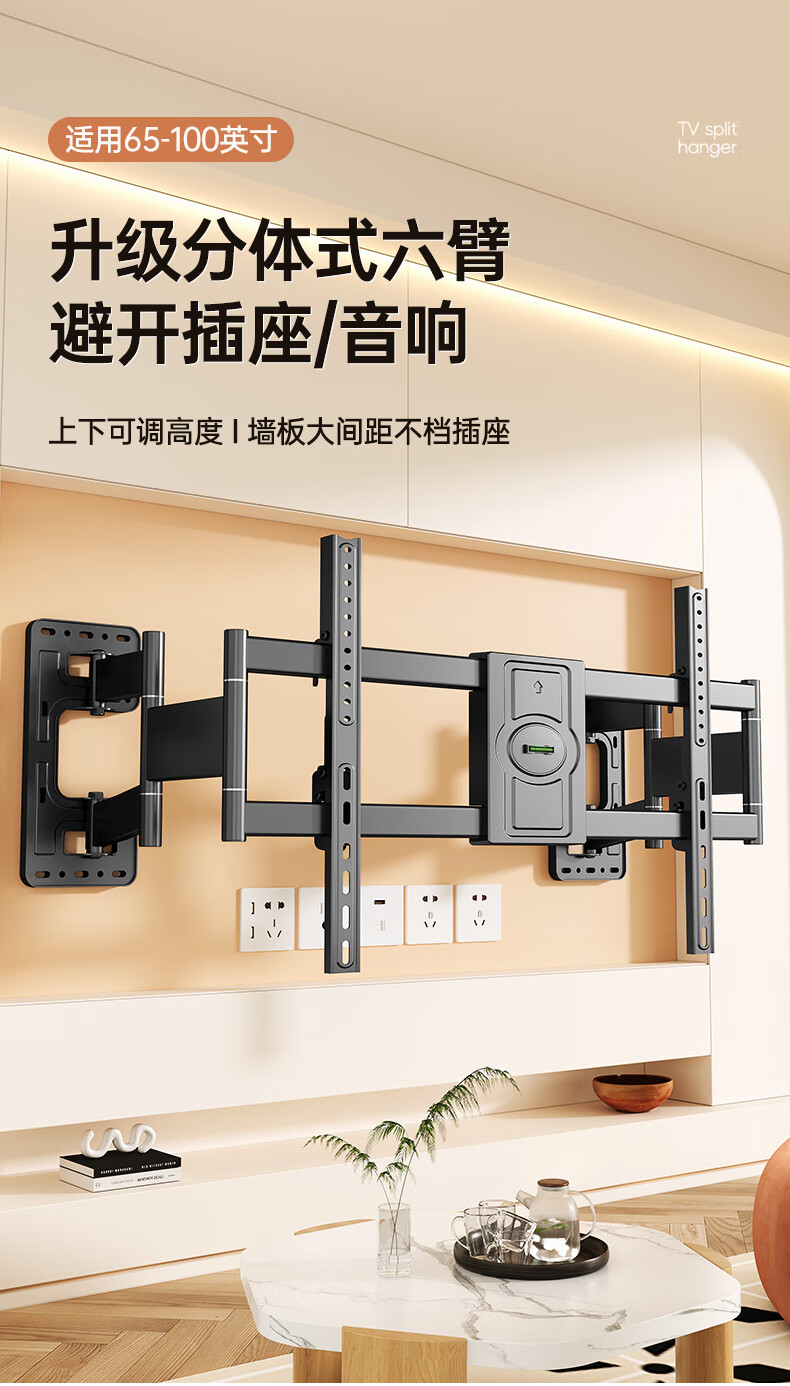 Beishi 55-100-inch TV bracket ultra-thin telescopic large-screen TV bracket with built-in subwoofer 55/75/80/100-inch TV telescopic bracket powerful six arms