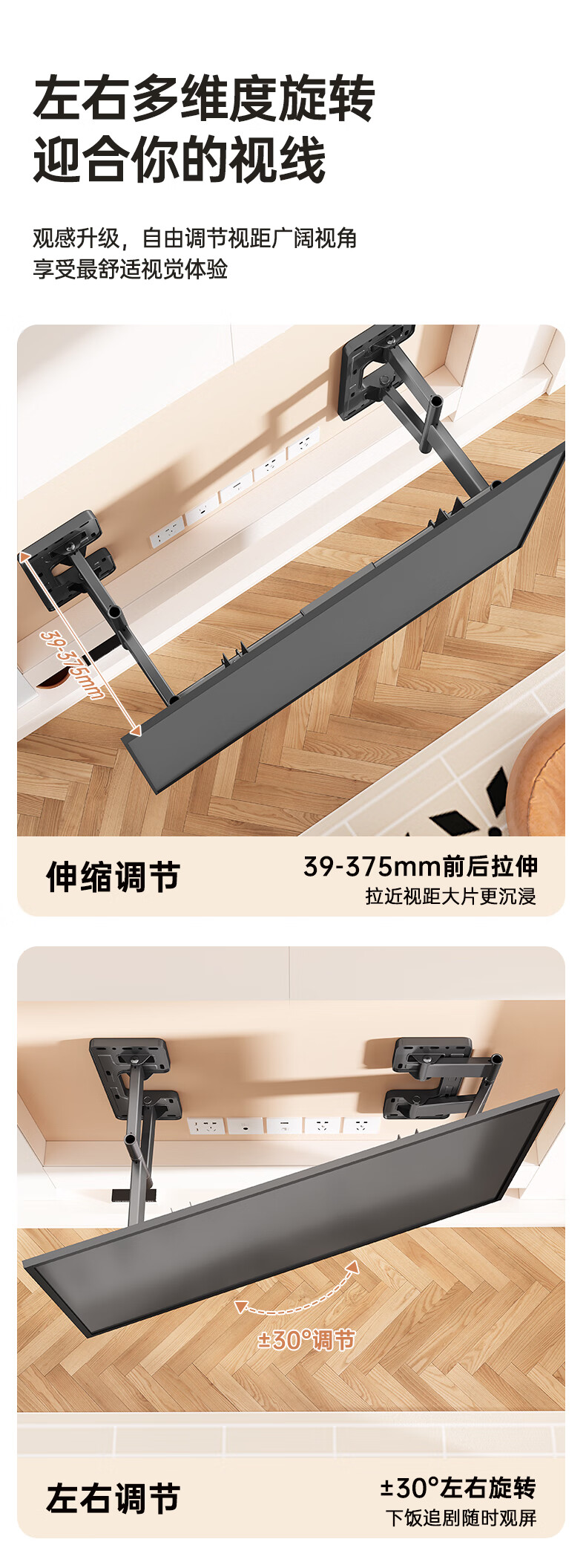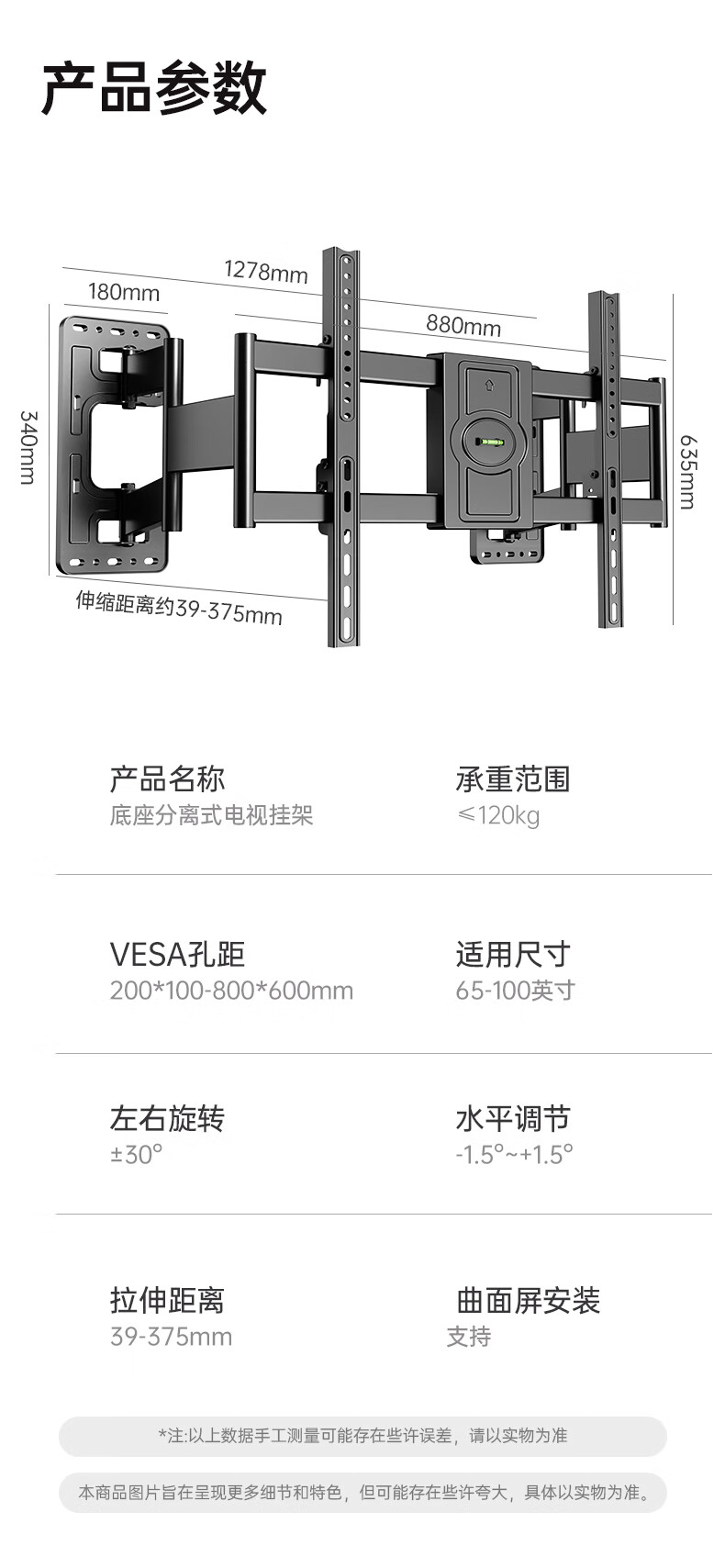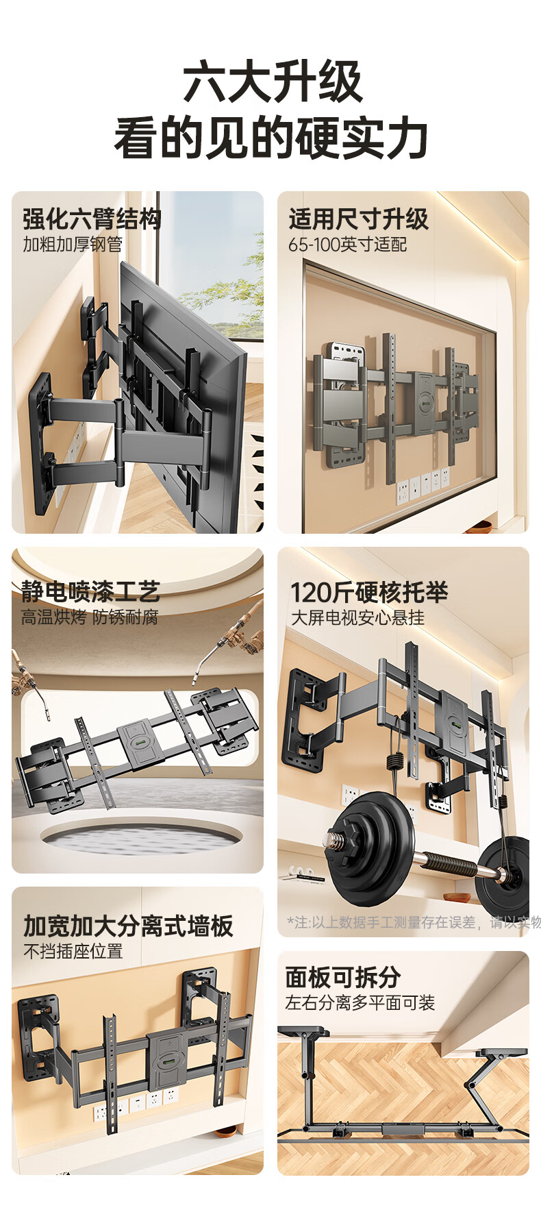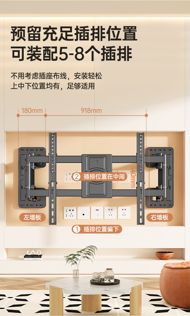 Beishi 55-100-inch TV bracket ultra-thin telescopic large-screen TV bracket with built-in subwoofer 55/75/80/100-inch TV telescopic bracket powerful six arms