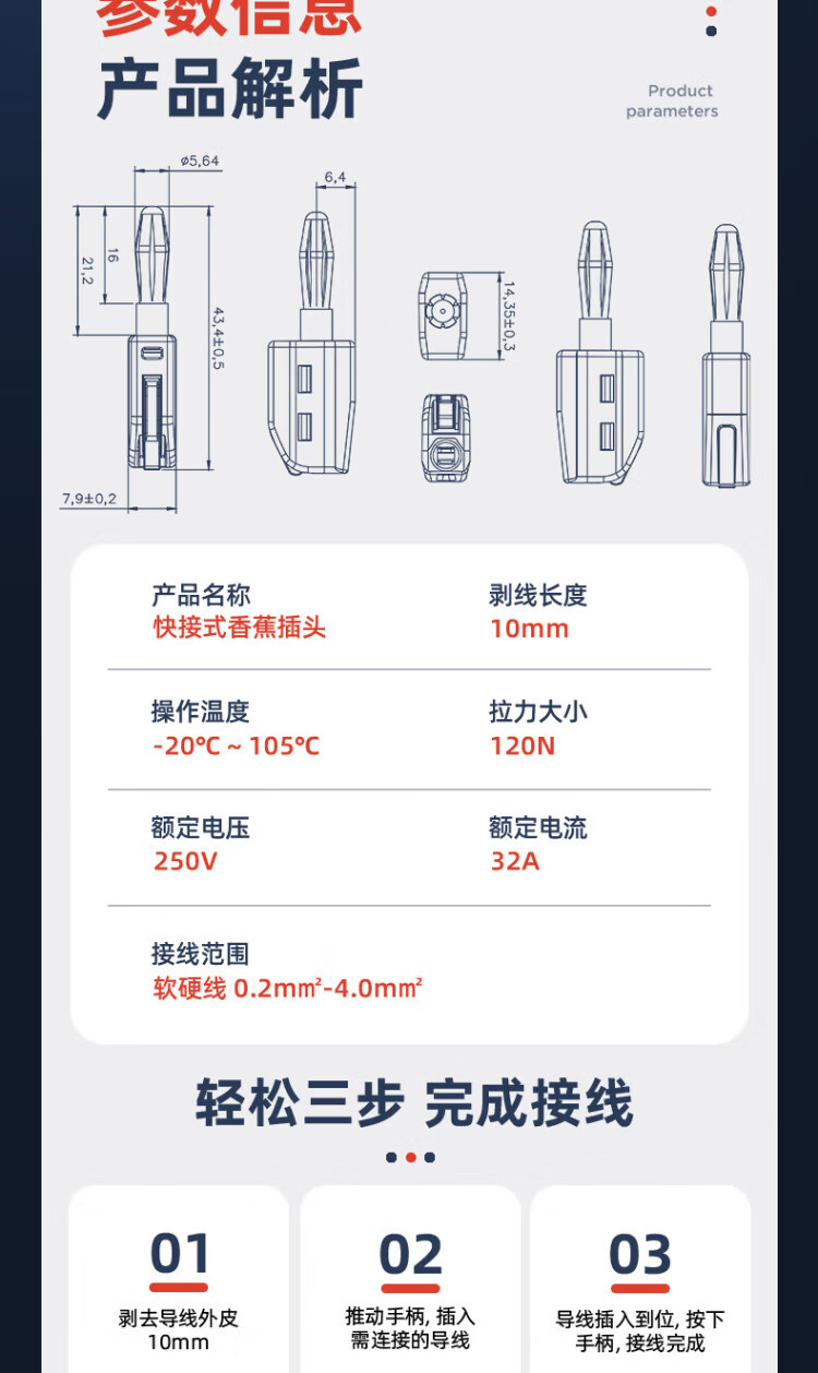 HUIJUN 4mm quick-connect banana plug high current 32A lantern head power test instrument plug connector red 1
