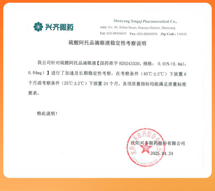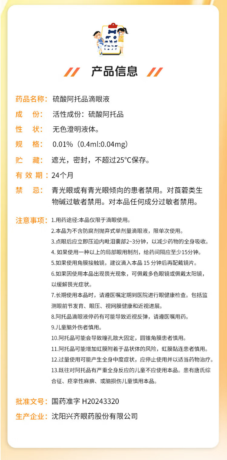 Xingqimei European Atropine Sulfate Eye Drops 0.01% (0.4ml 0.04mg)*0.4ml*40 bottles