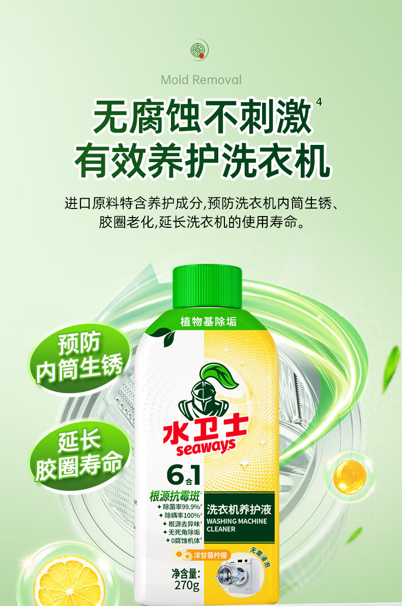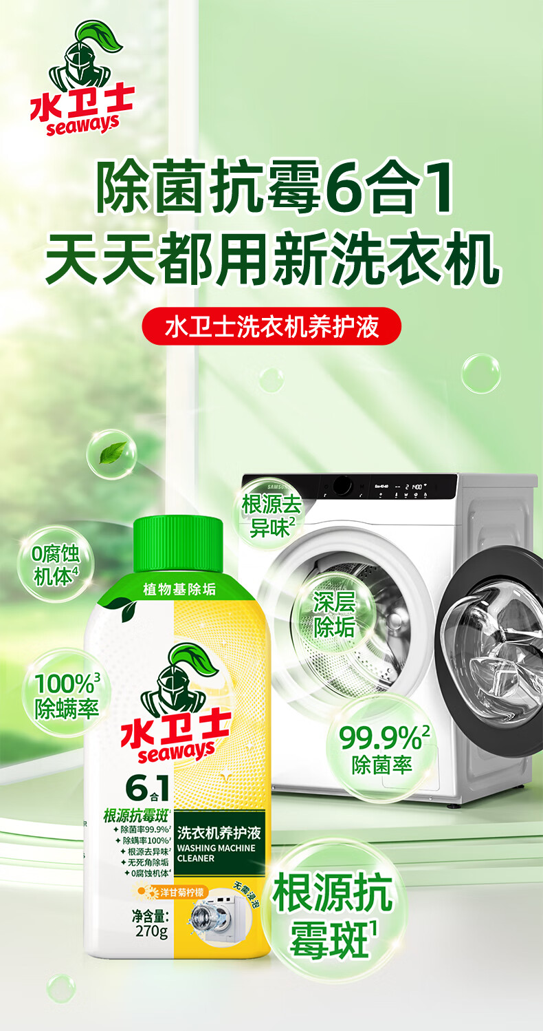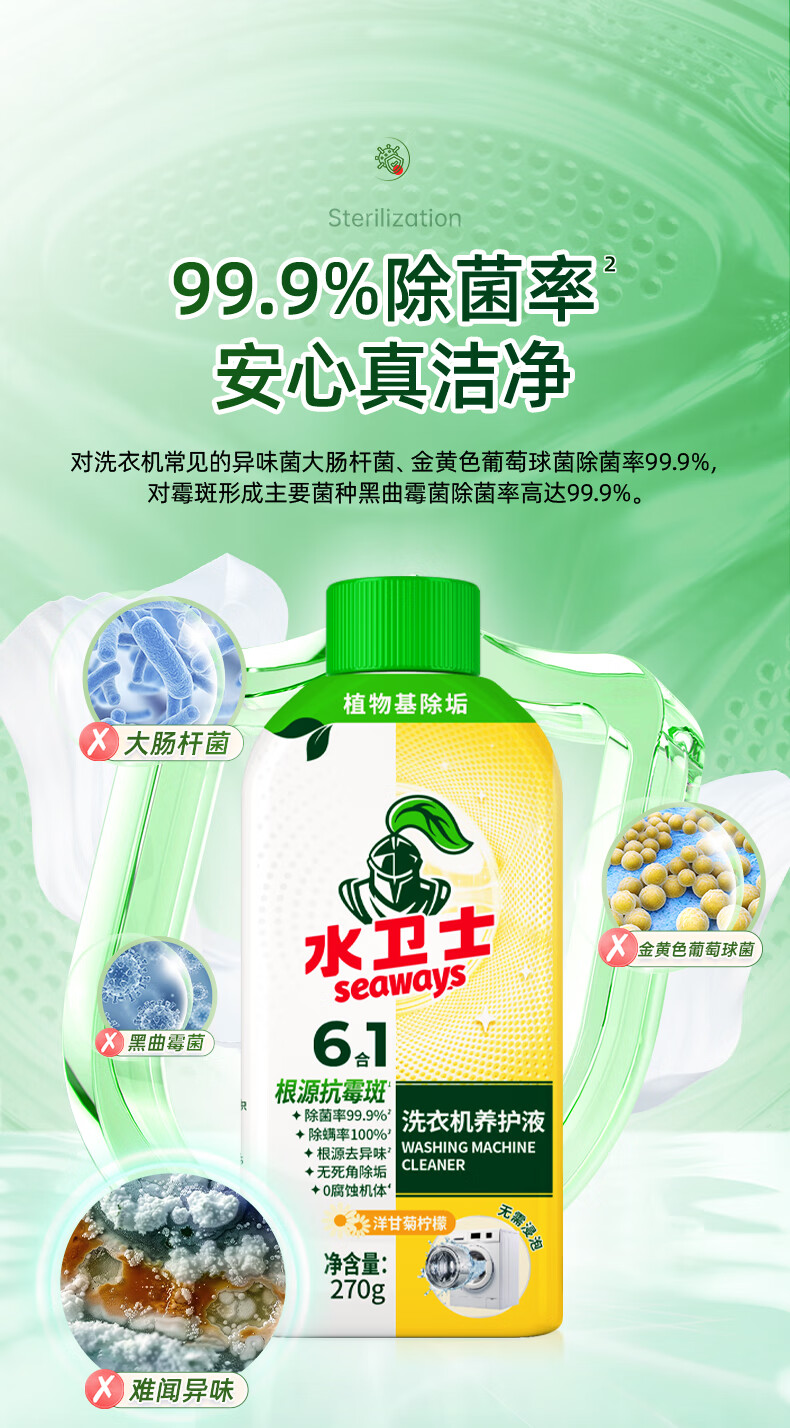 Water Guard washing machine cleaning agent 270g*3 bottles soak-free drum pulsator washing machine cleaning agent descaling, anti-bacterial and anti-mildew