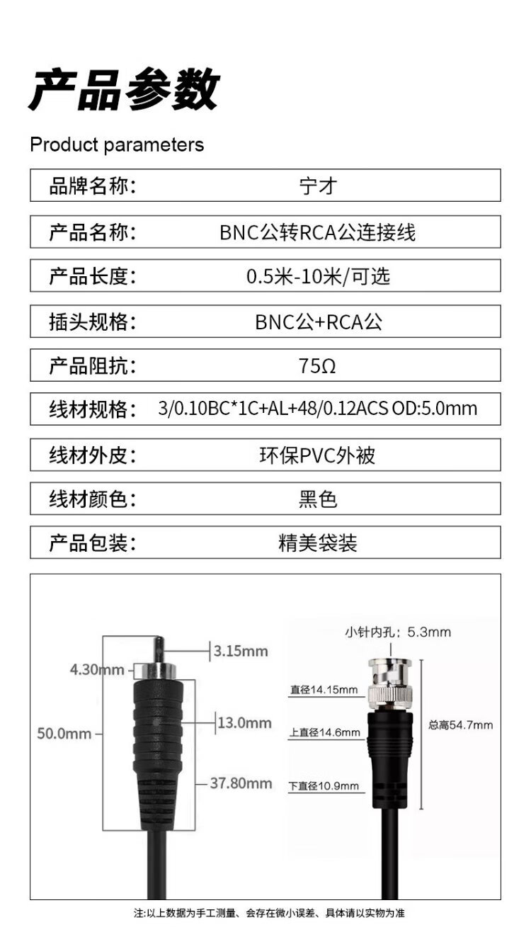 Ningcai (NINGCAI) BNC to AV cable 75 ohm video adapter extension cable NC-Q9J/RCAJ2V0100 coaxial Q9 male to RCA male black 1m