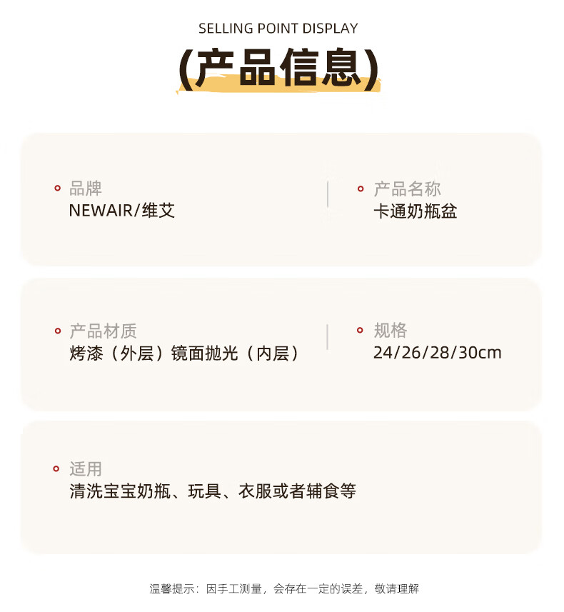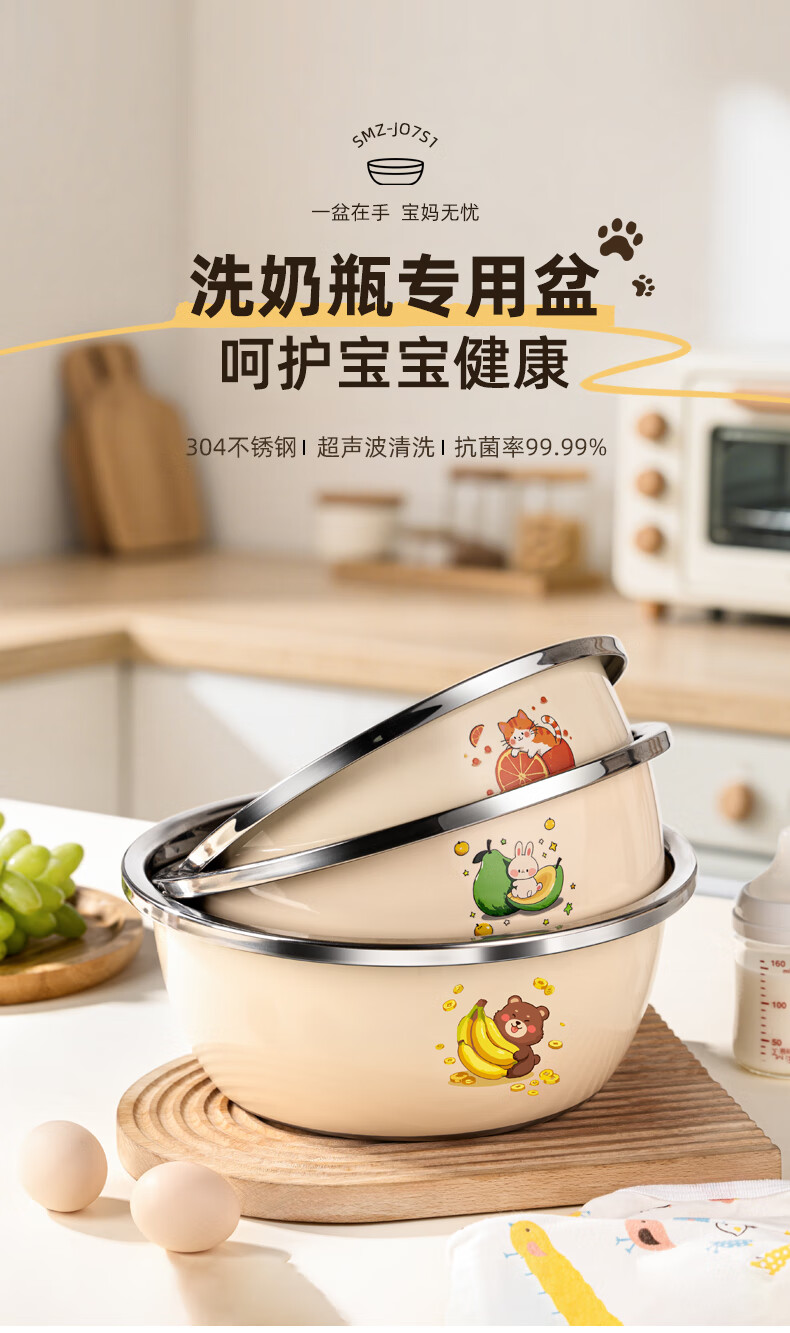 Newair baby bottle washing basin, food-grade baby 304 stainless steel, ironing, cleaning, draining, disinfecting, washing butt and face