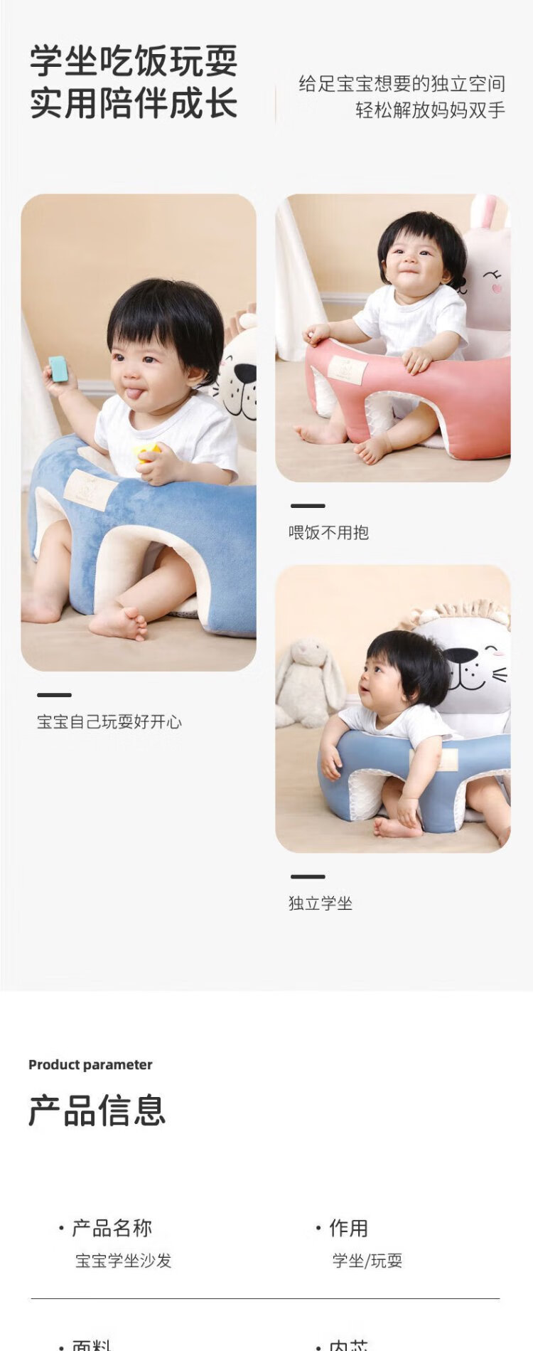 Newborn baby learning chair baby PU waterproof technology cloth newborn sitting artifact anti-fall small sofa multi-functional dining chair