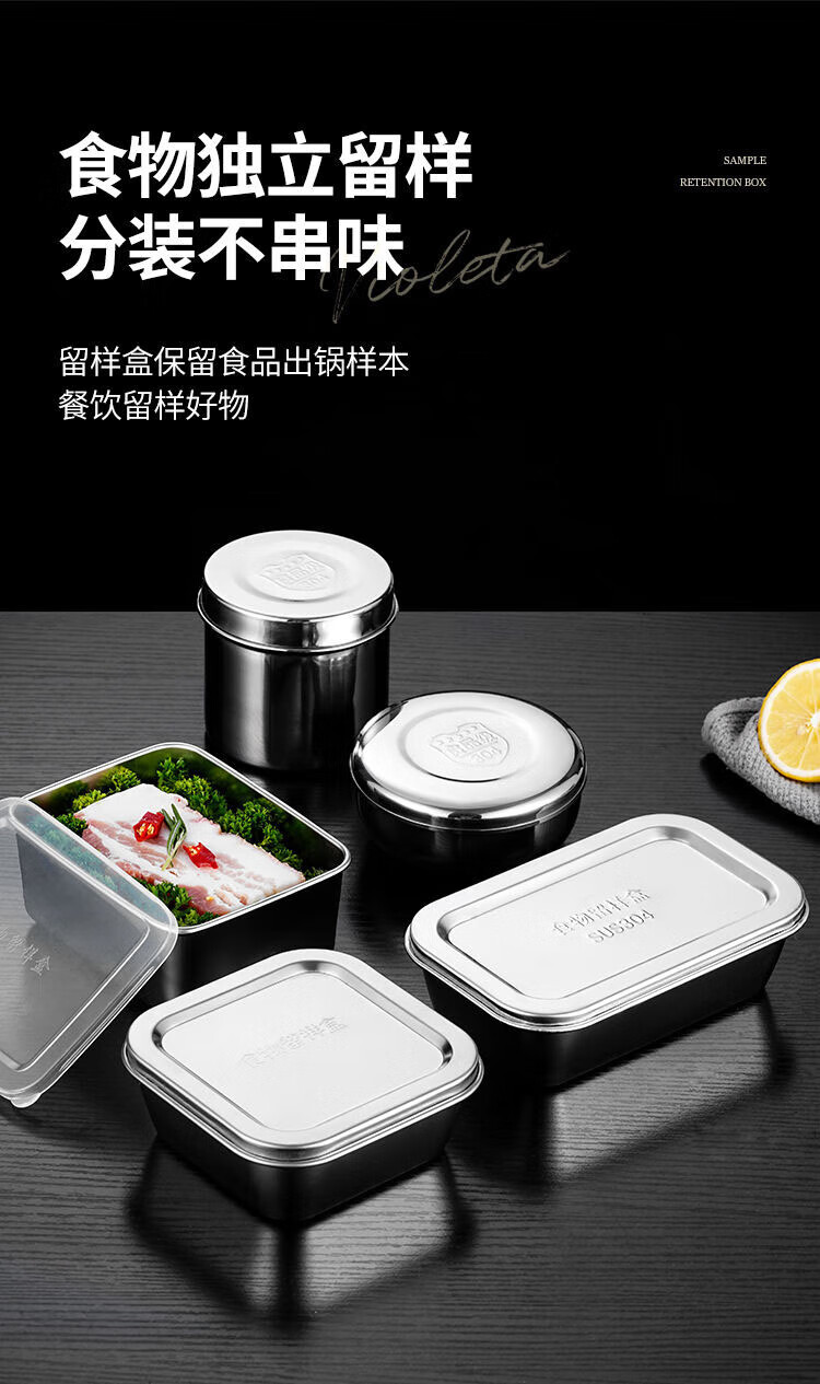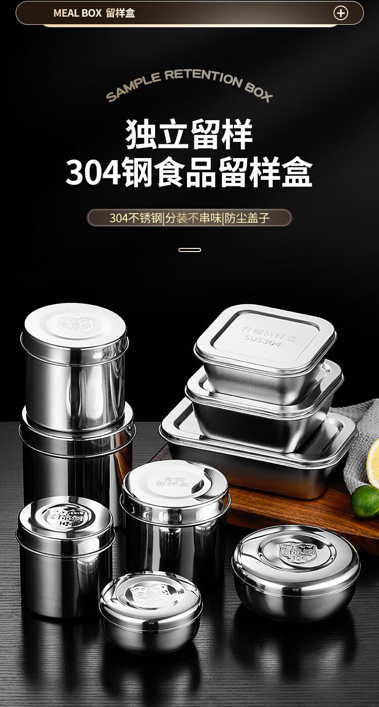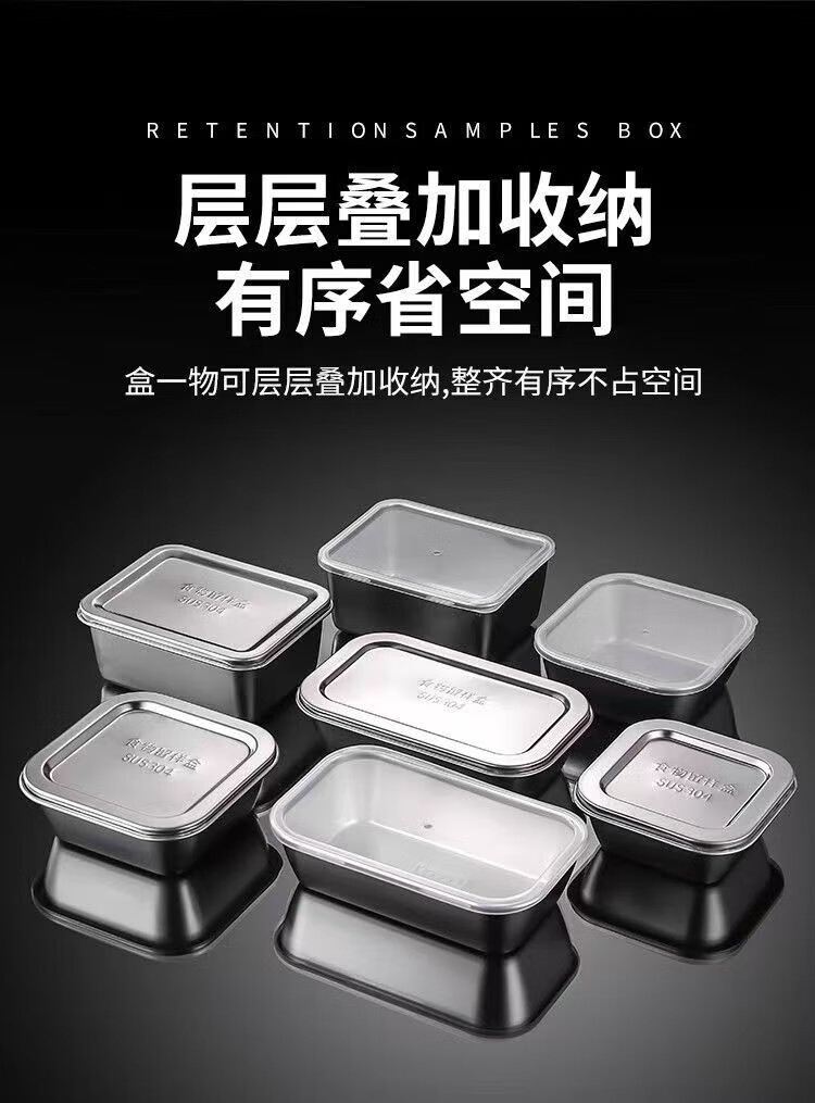 Zhaoshen 304 stainless steel sample retention box Kindergarten school canteen kitchen food sample retention box with lid Rectangular deepened with steel lid 3 pieces (pack 300g/) Jingcangfa