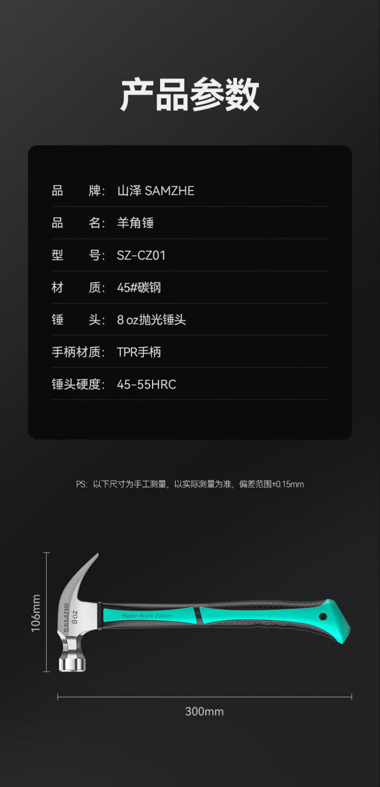 Shanze fiber handle claw hammer multi-purpose hammer hammer 8oz SZ-CZ01