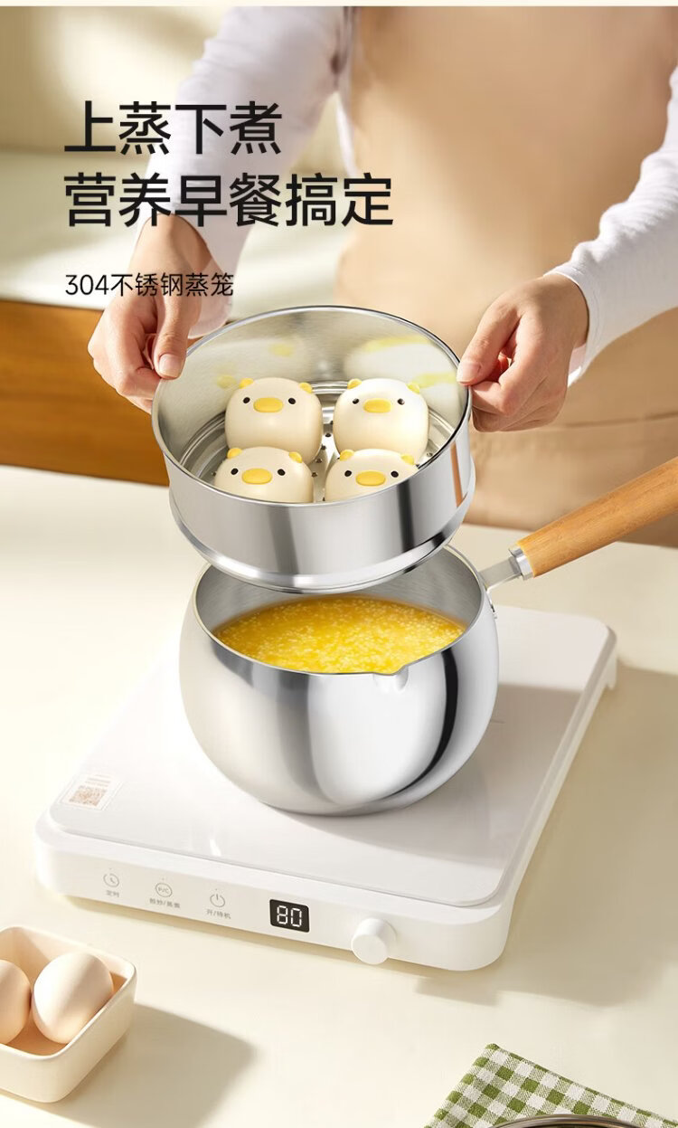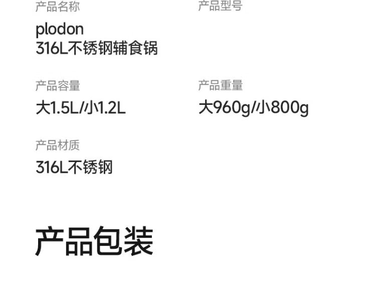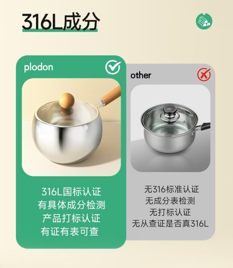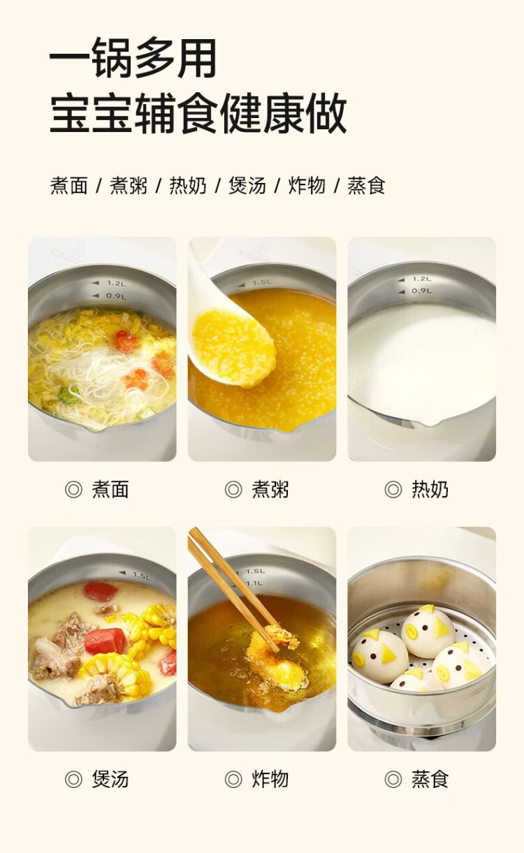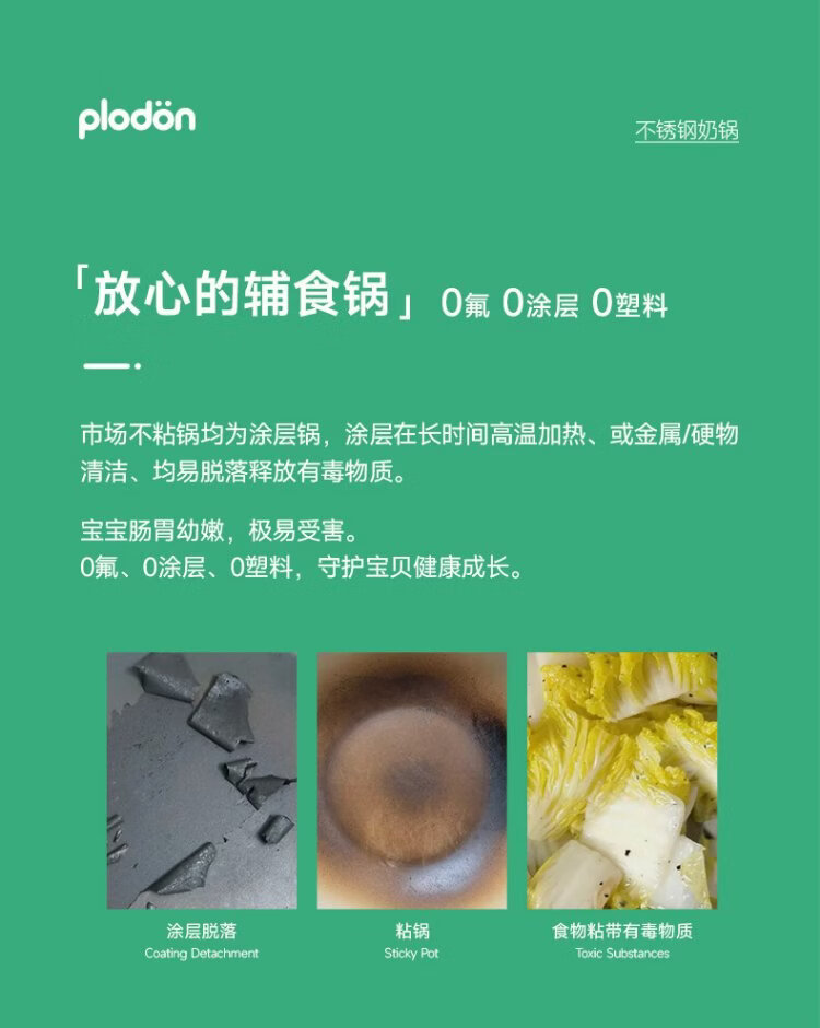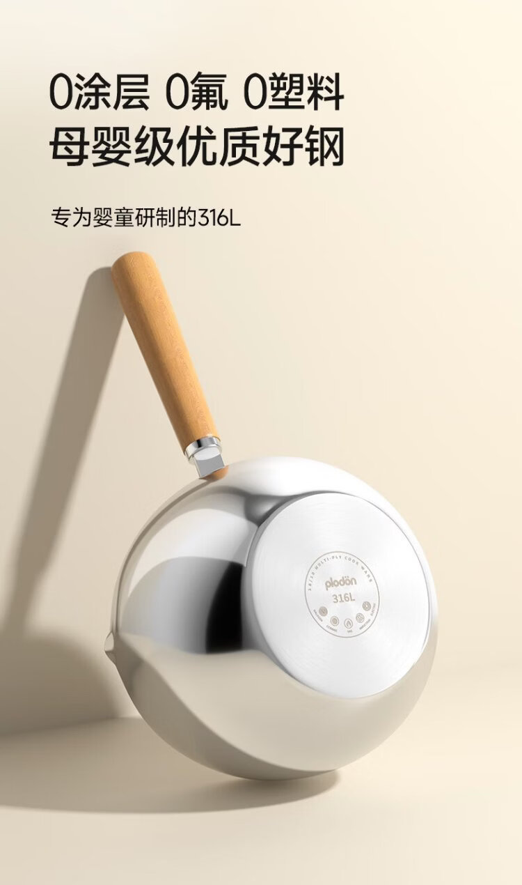 PLODON baby food pot, milk pot, 316L stainless steel uncoated soup pot, small frying pan, steaming and cooking integrated baby food pot