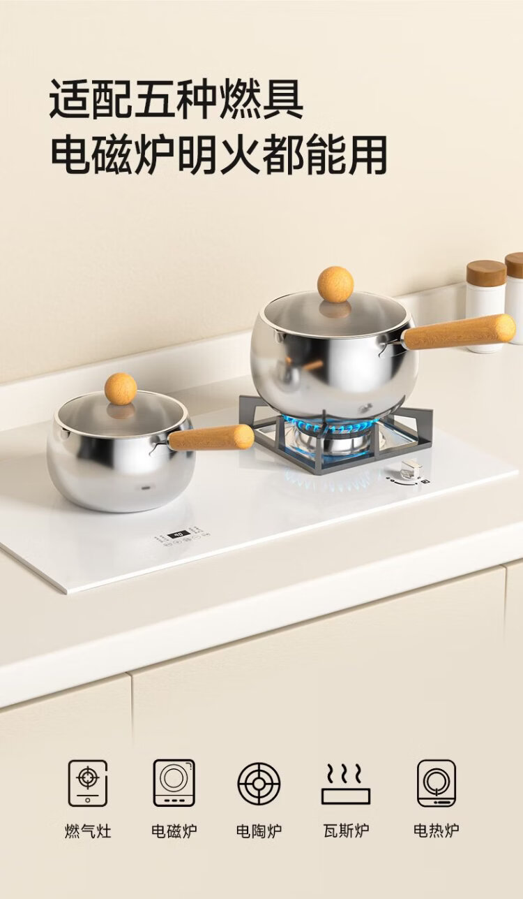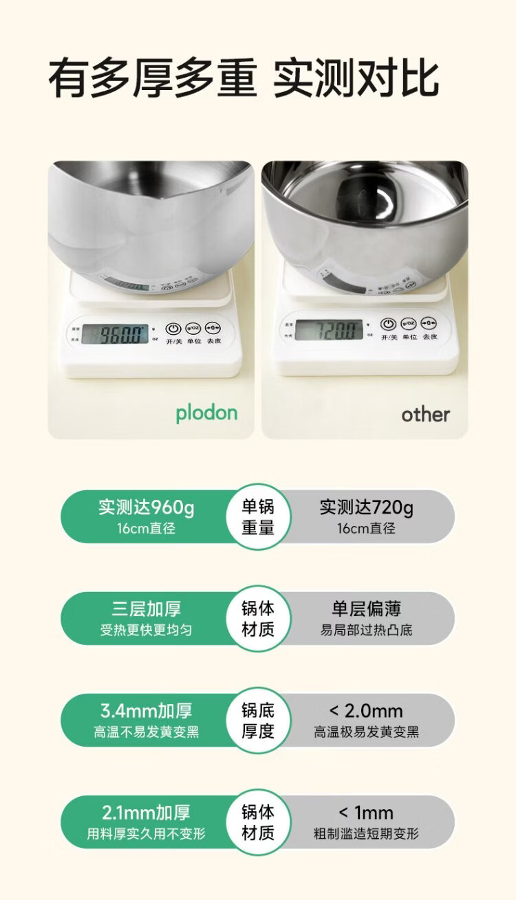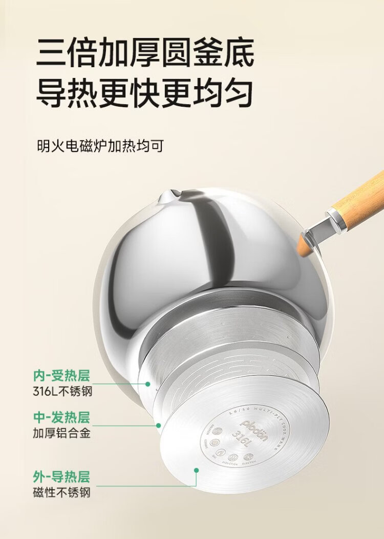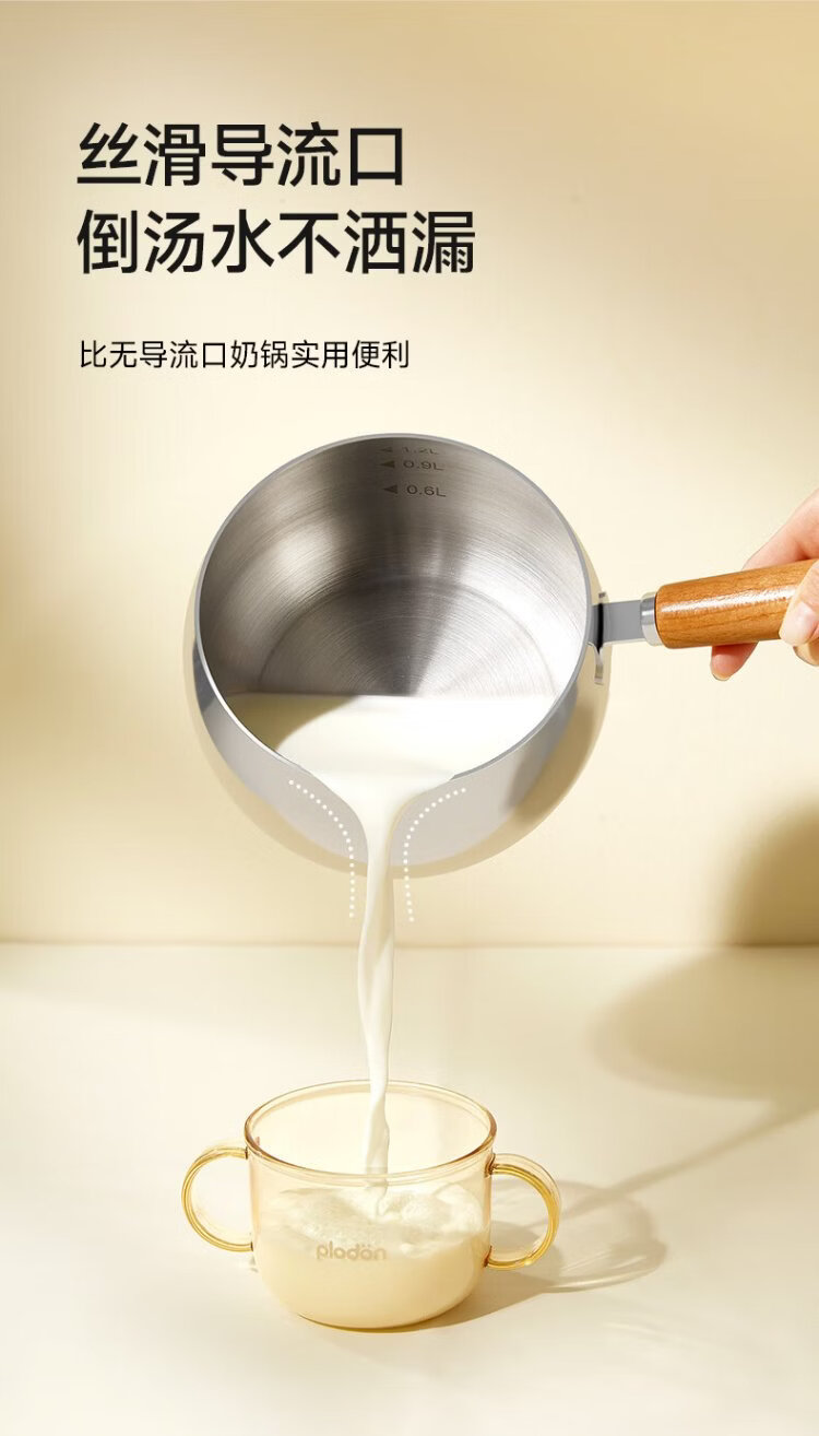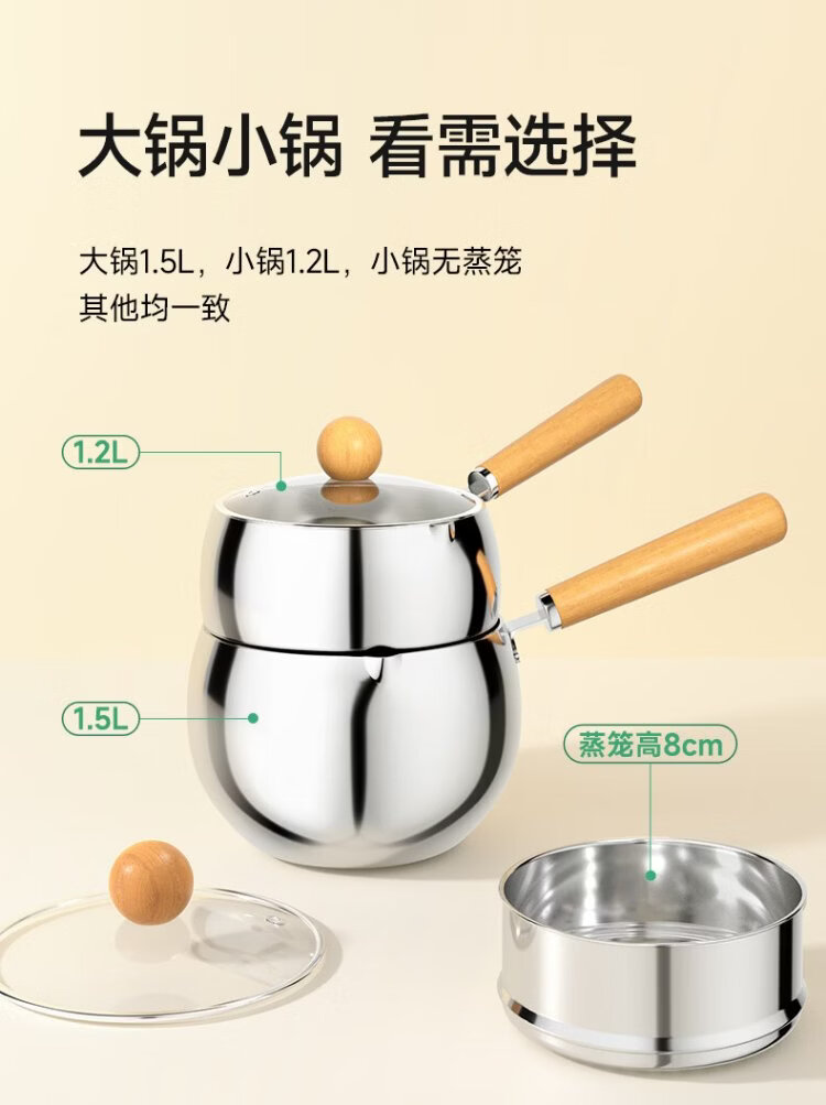 PLODON baby food pot, milk pot, 316L stainless steel uncoated soup pot, small frying pan, steaming and cooking integrated baby food pot
