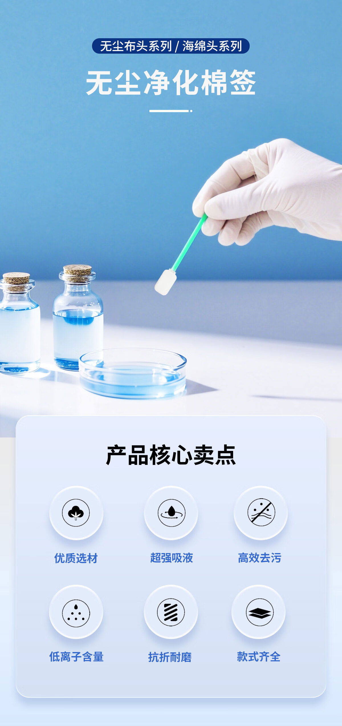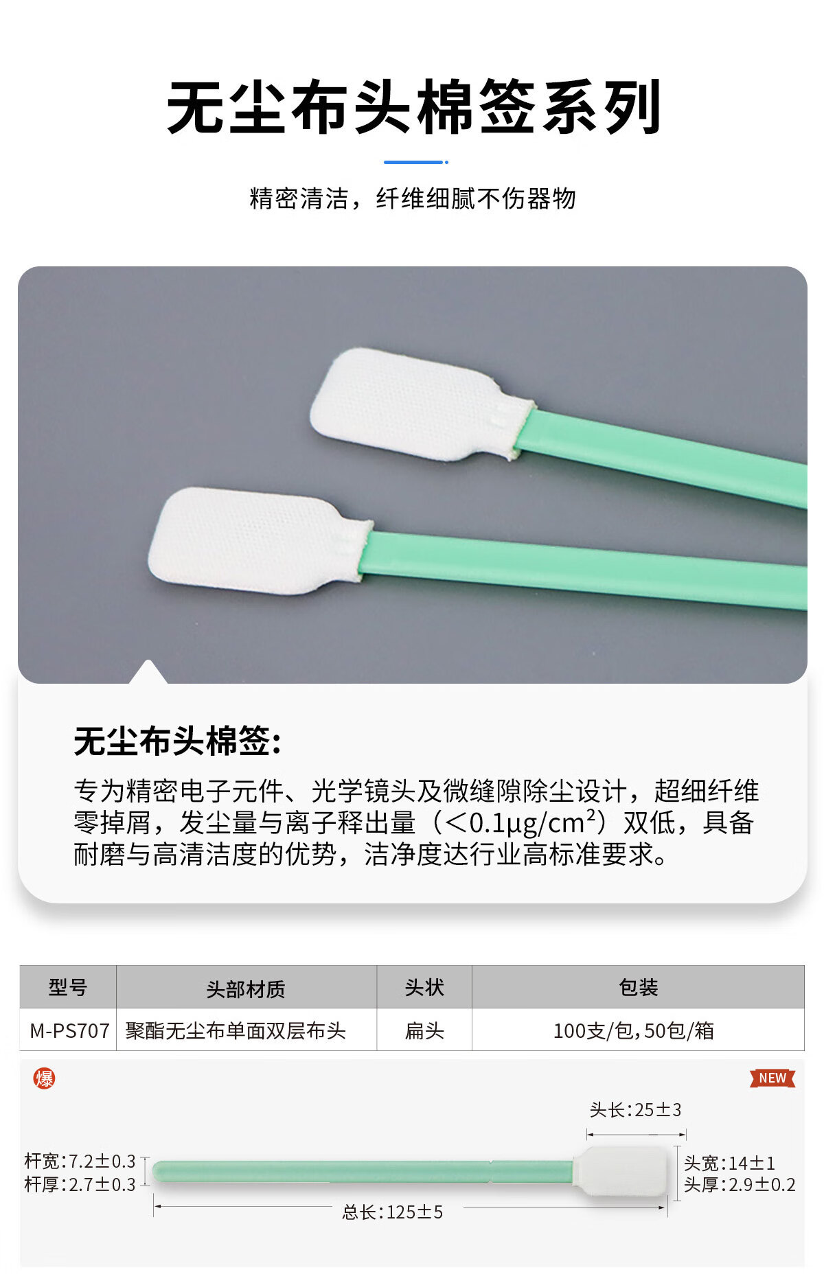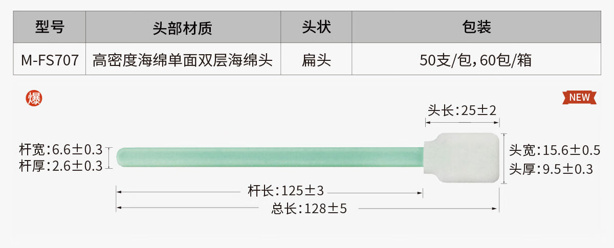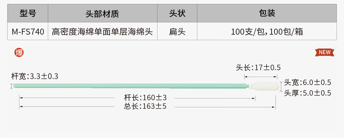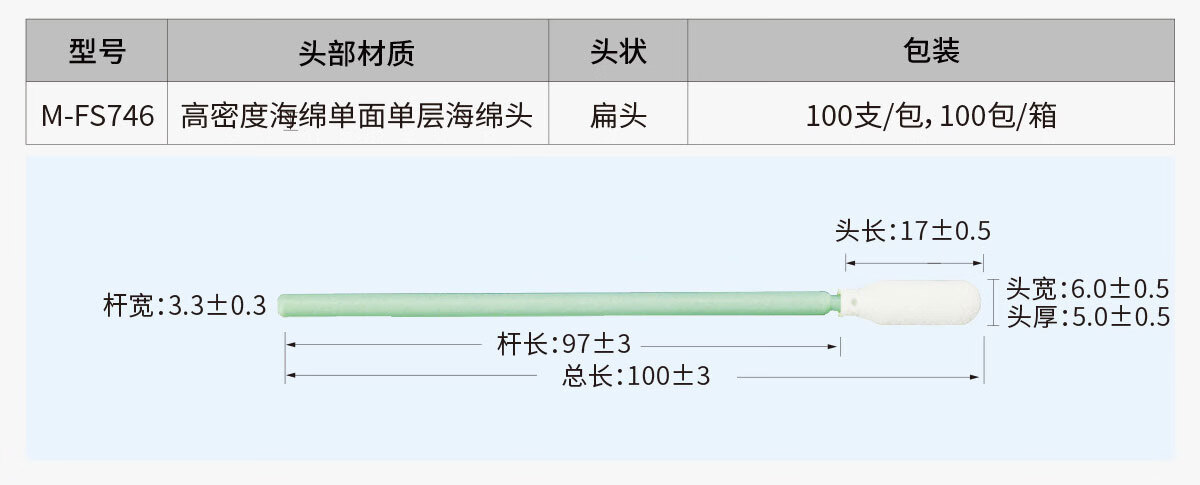 Meister dust-free wiping stick, dust-free cloth head/sponge head dual-head optional, suitable for Class 100 and Class 1000 clean rooms, special cleaning cotton swab M-FS746 for electronics factory laboratories