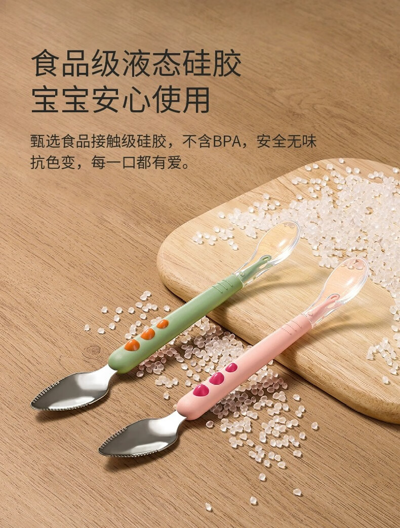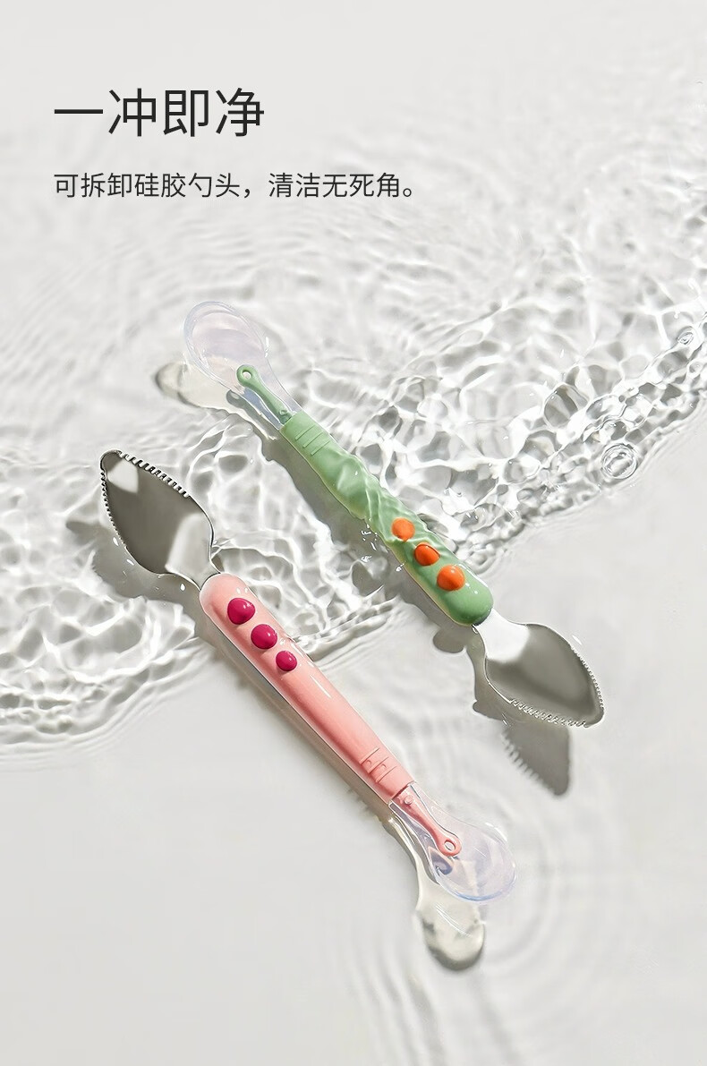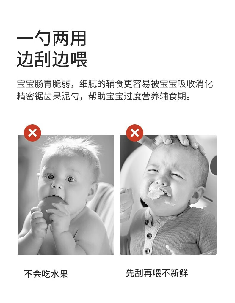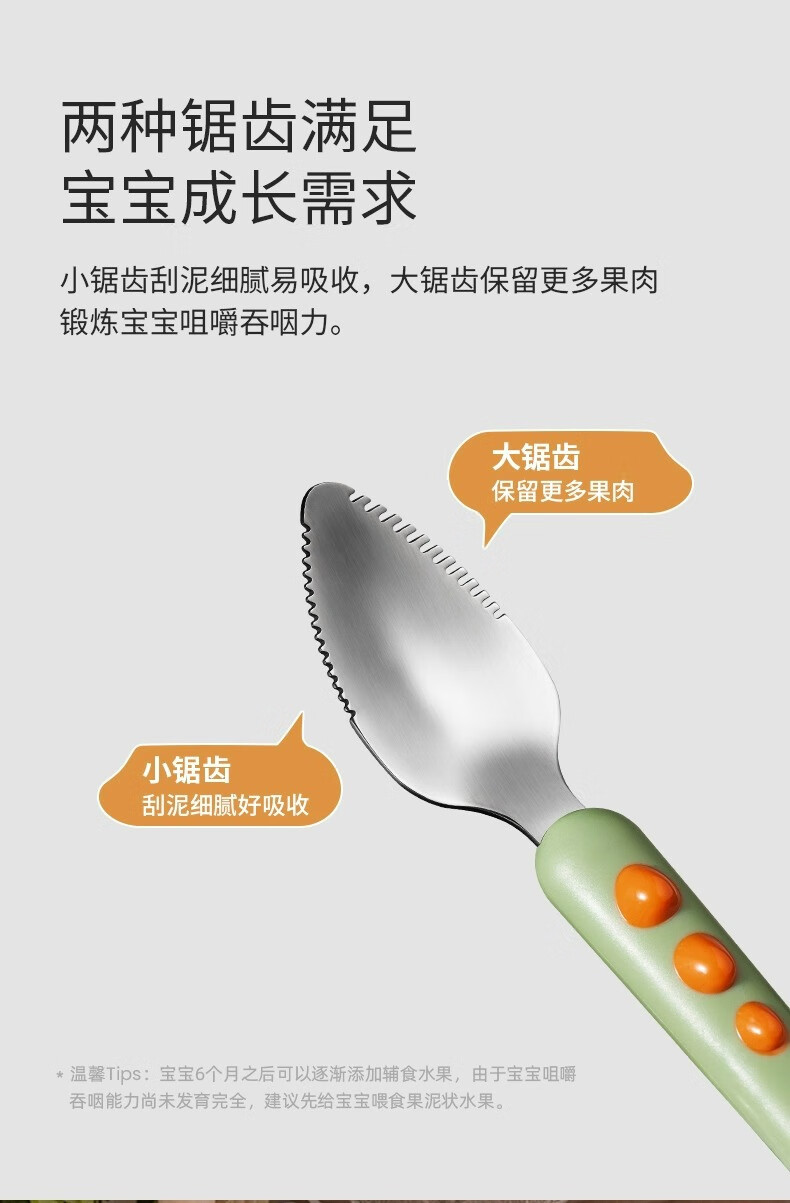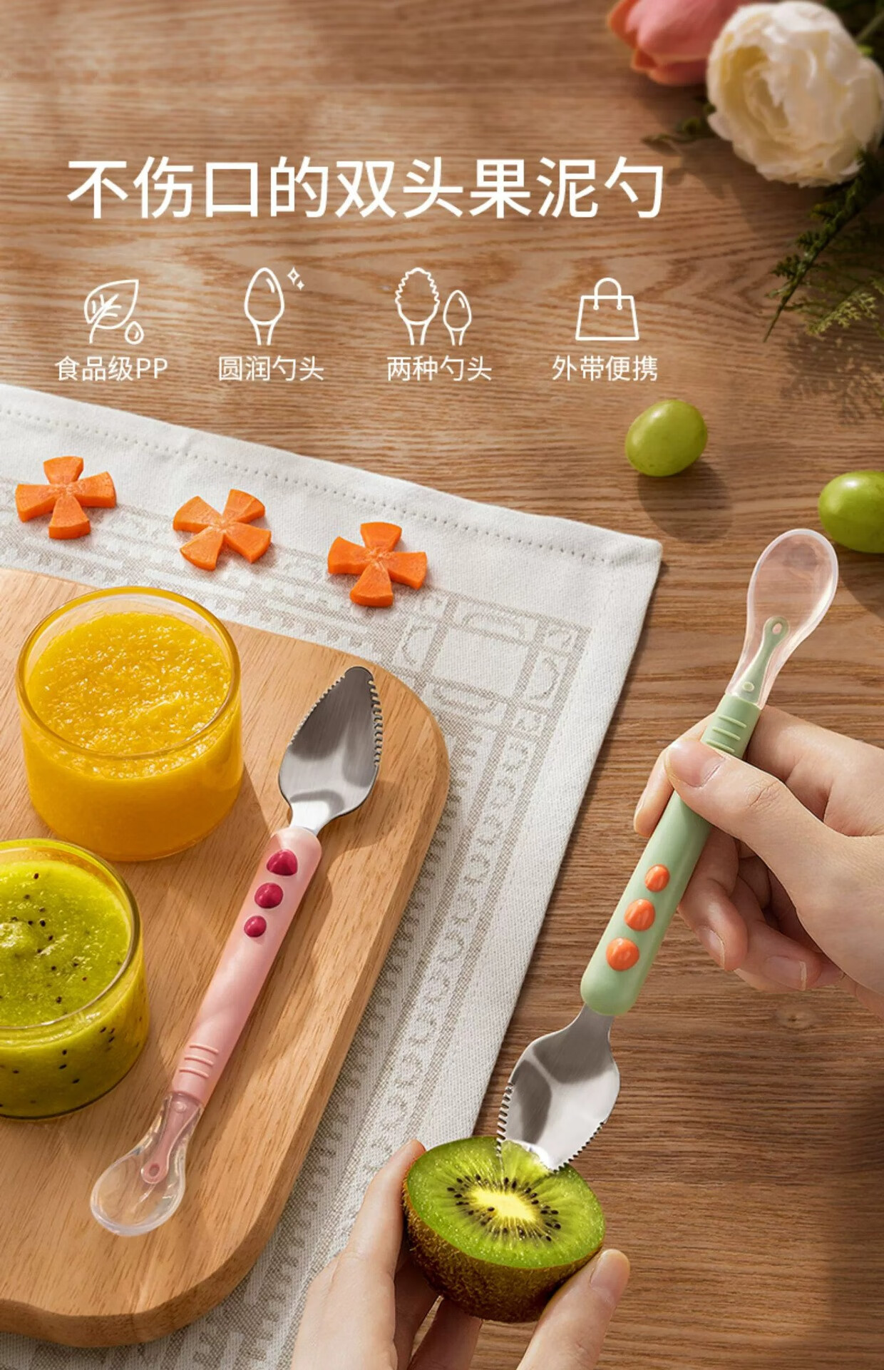 JOYNCLEON baby serrated double-head mud scraper baby food supplement tableware children's fruit scooping and scraping spoon blue JYP127443