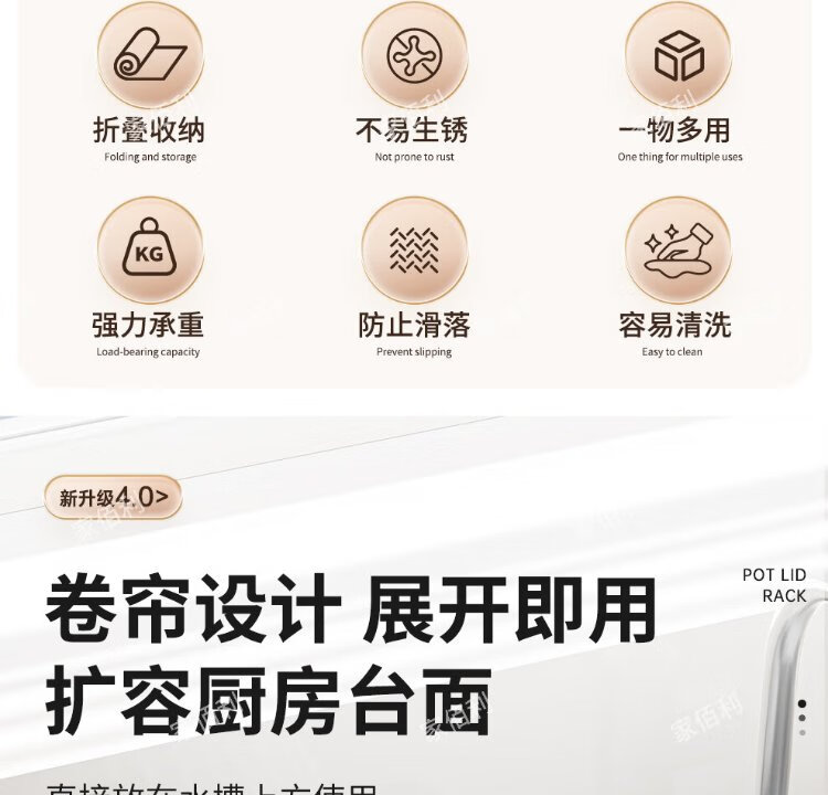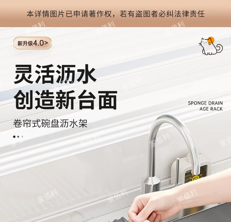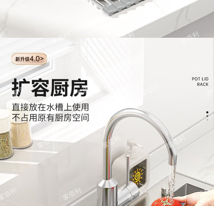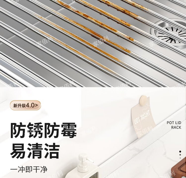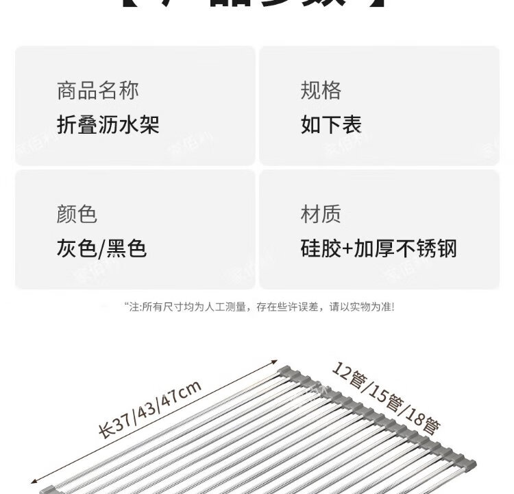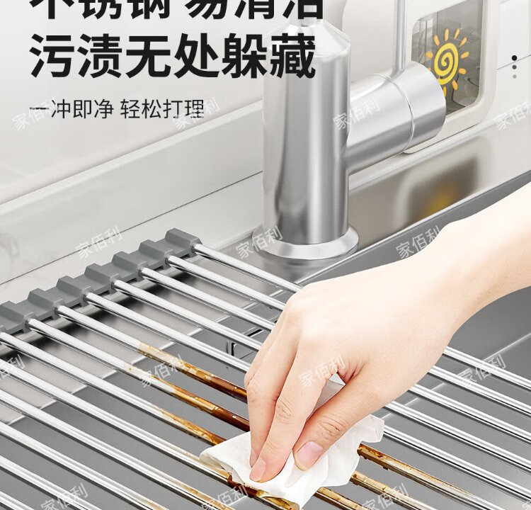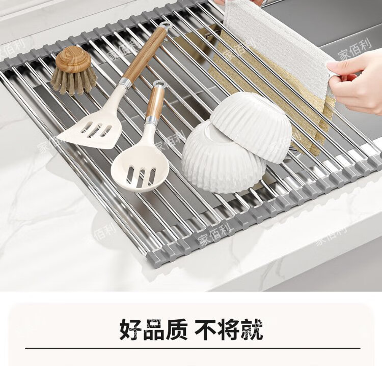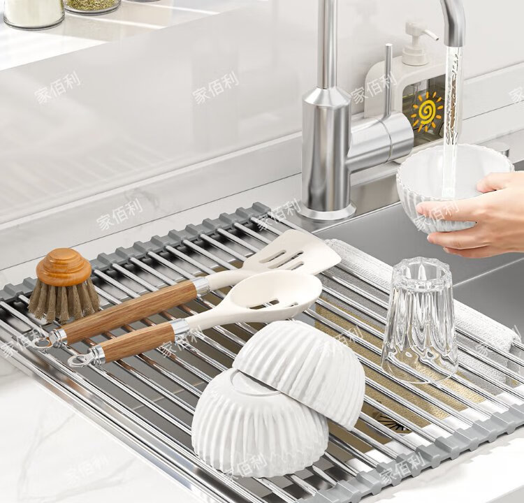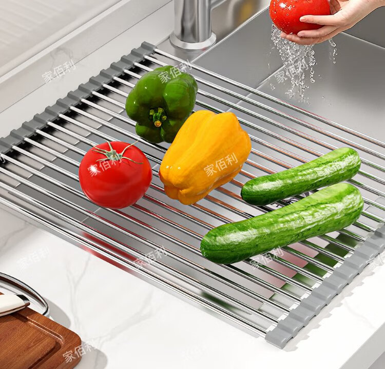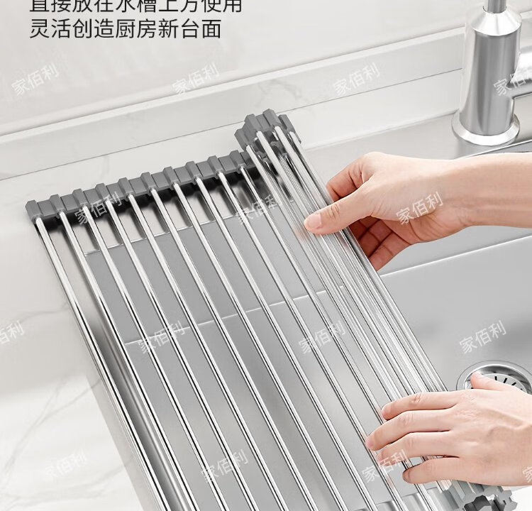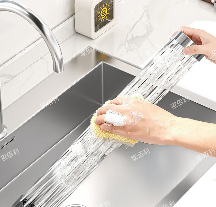 Home Baili Kitchen Sink Drain Rack Pool Storage Rack Dishes Dish Rack Drain Roller Curtain Foldable Drain Basket