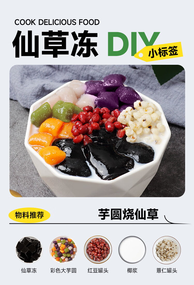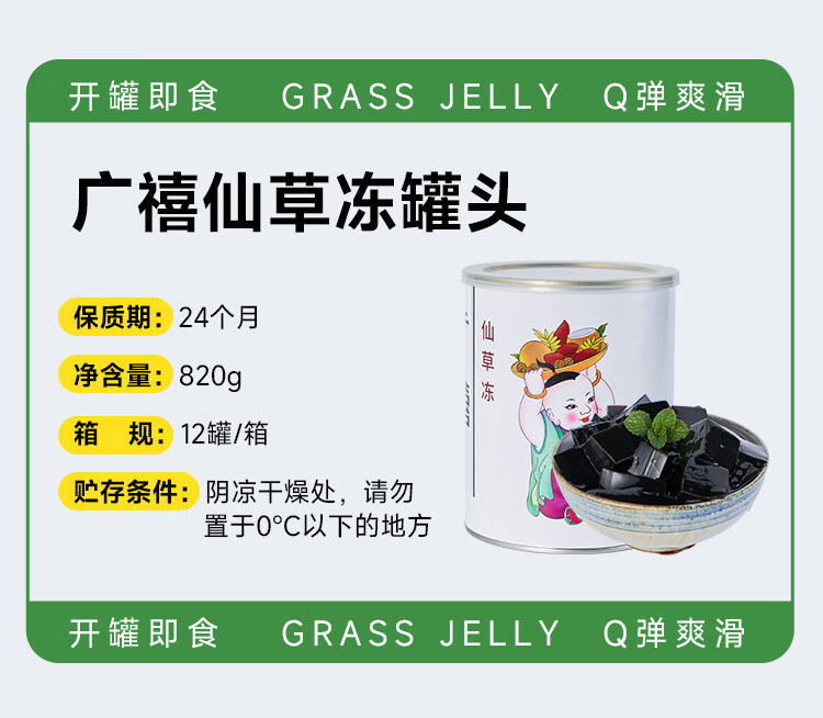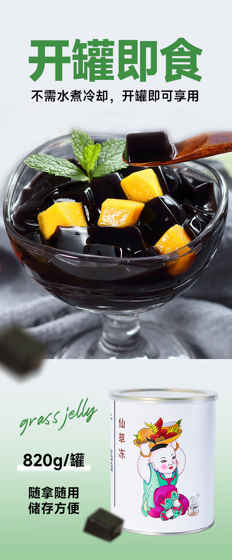 Guangxi Premium Fairy Grass Jelly Can 820g No-cook ready-to-eat baking ingredients milk tea shop special black jelly milk tea ingredients