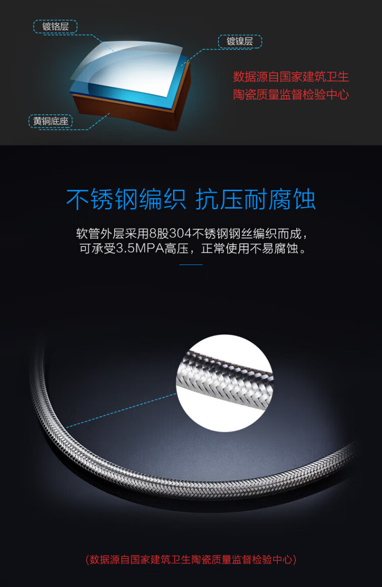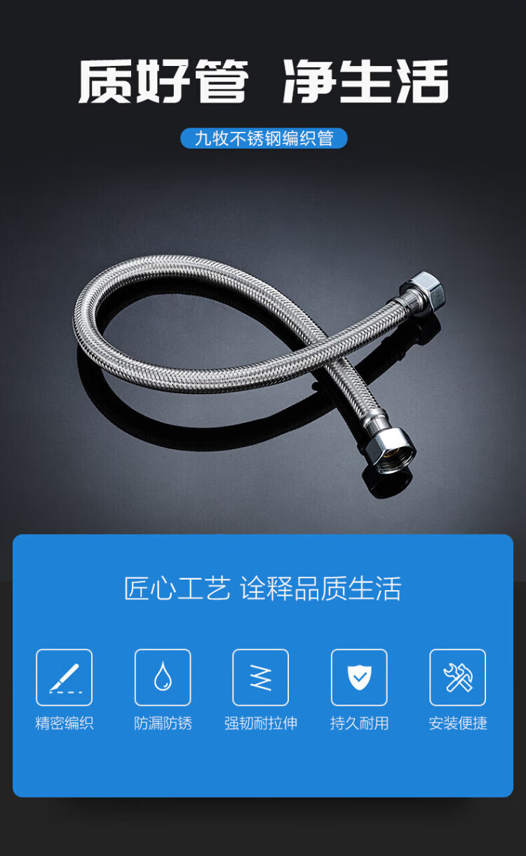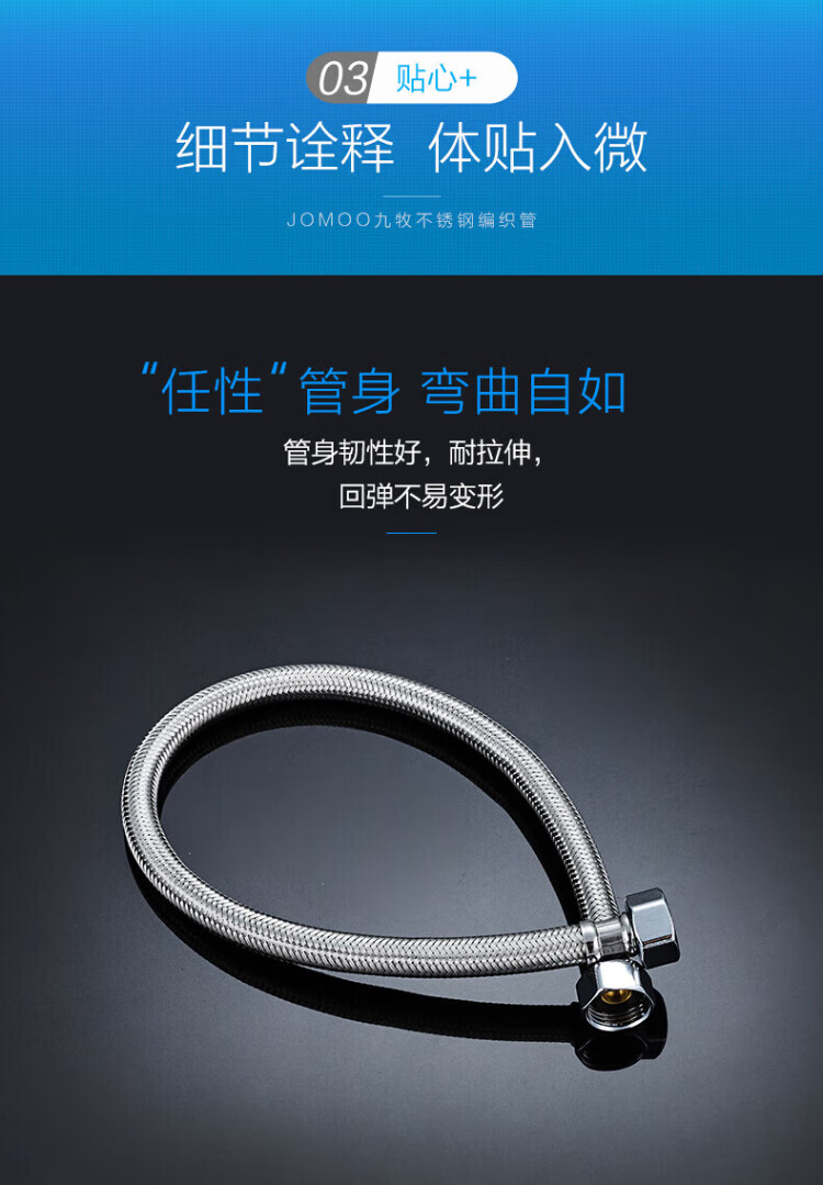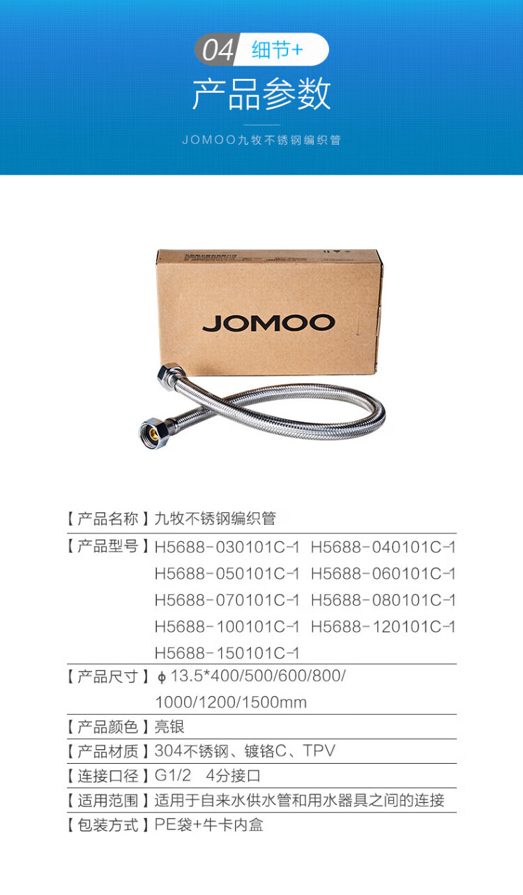 JOMOO stainless steel hose 4-point interface leak-proof, rust-proof, high temperature resistance H5688 stainless steel water inlet pipe -1.5M H5688-150101C-1