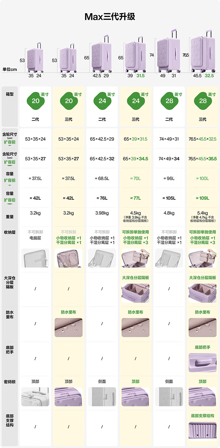 Bremen suitcase women's trolley case boarding suitcase men's password large capacity side opening third generation 24 inches purple