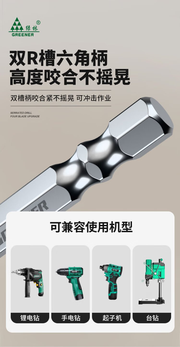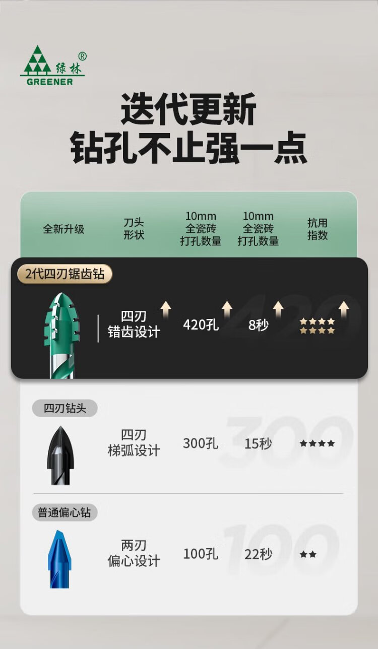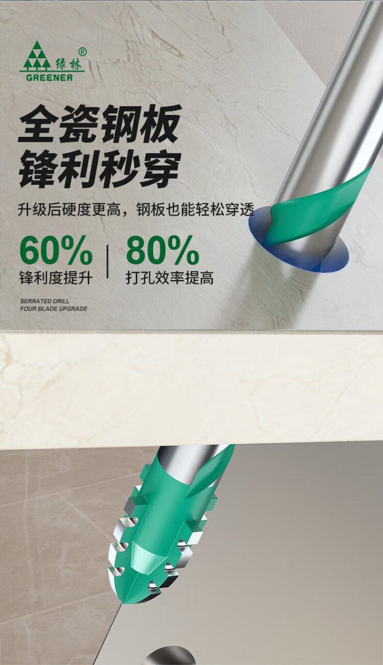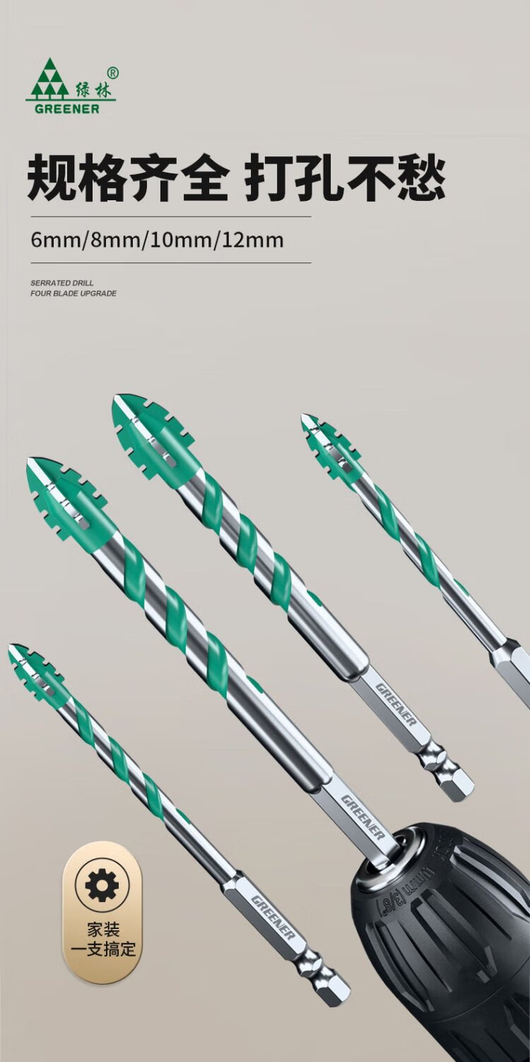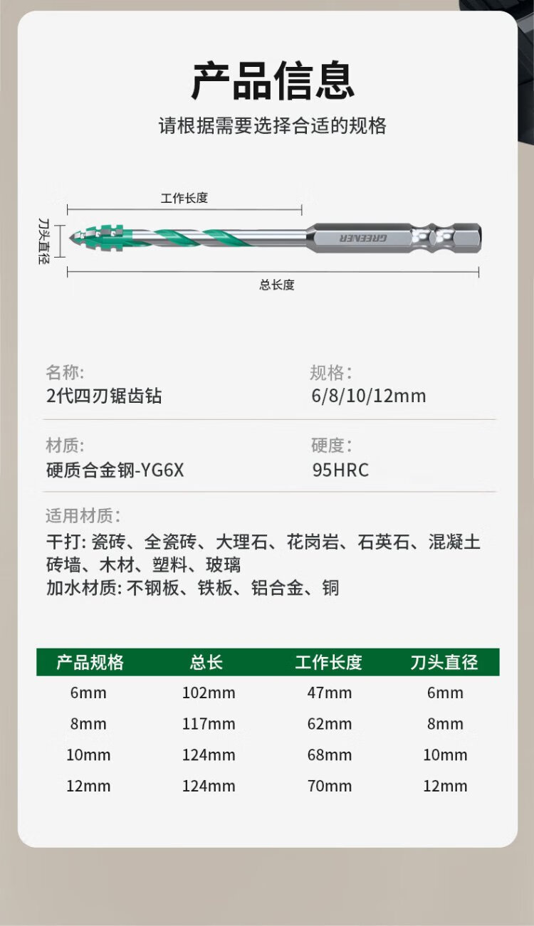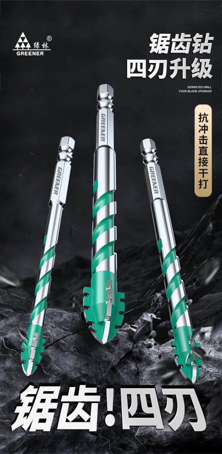 GREENER four-edged serrated eccentric drill bit for ceramic tile drilling concrete special electric drill carbide 6/8/10/12mm