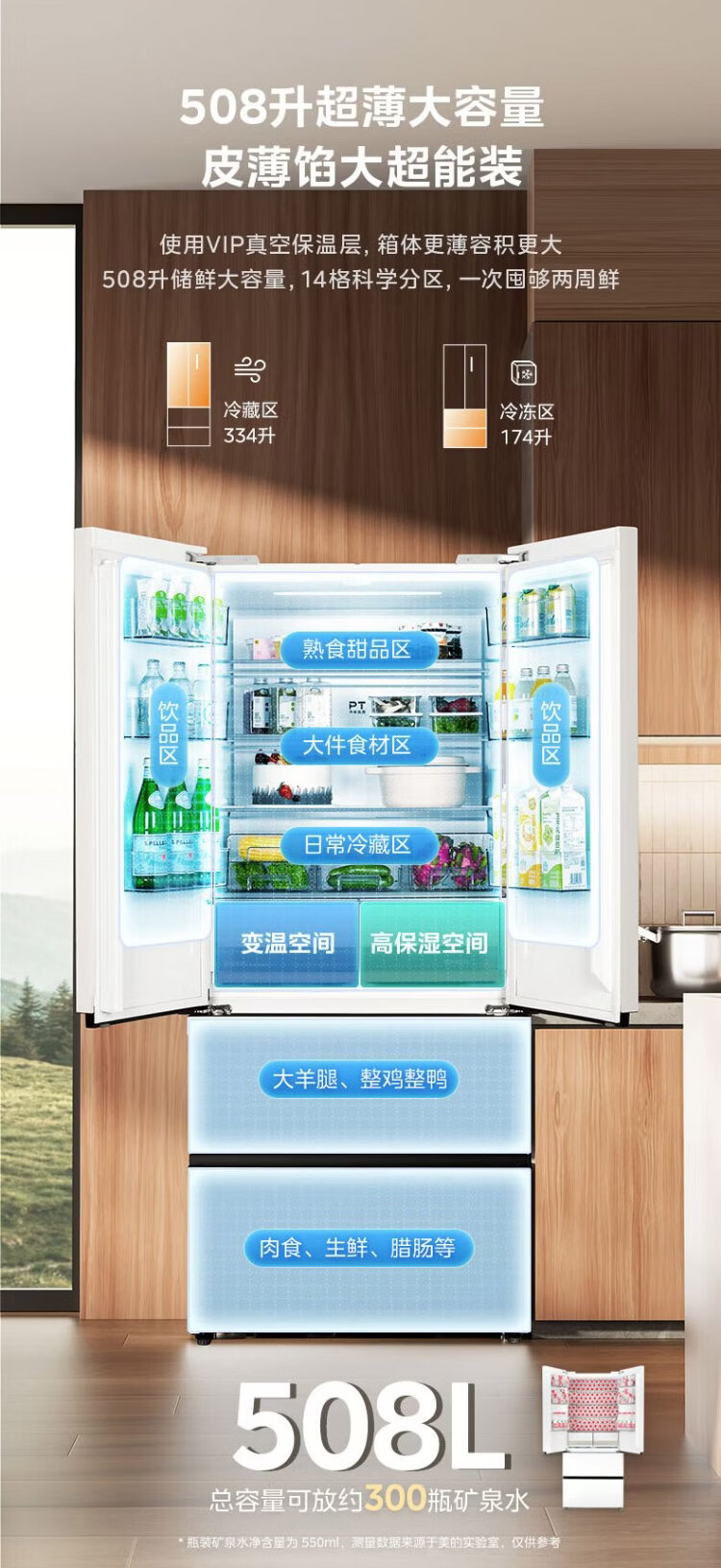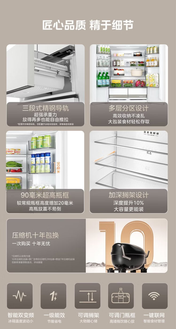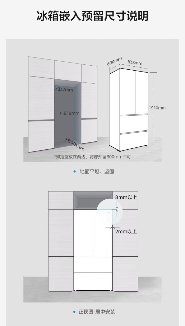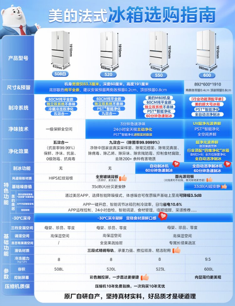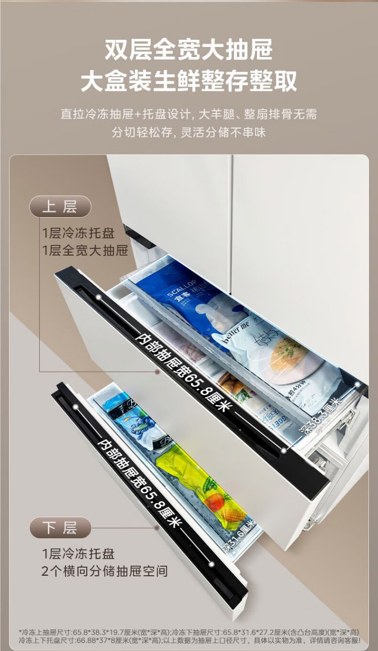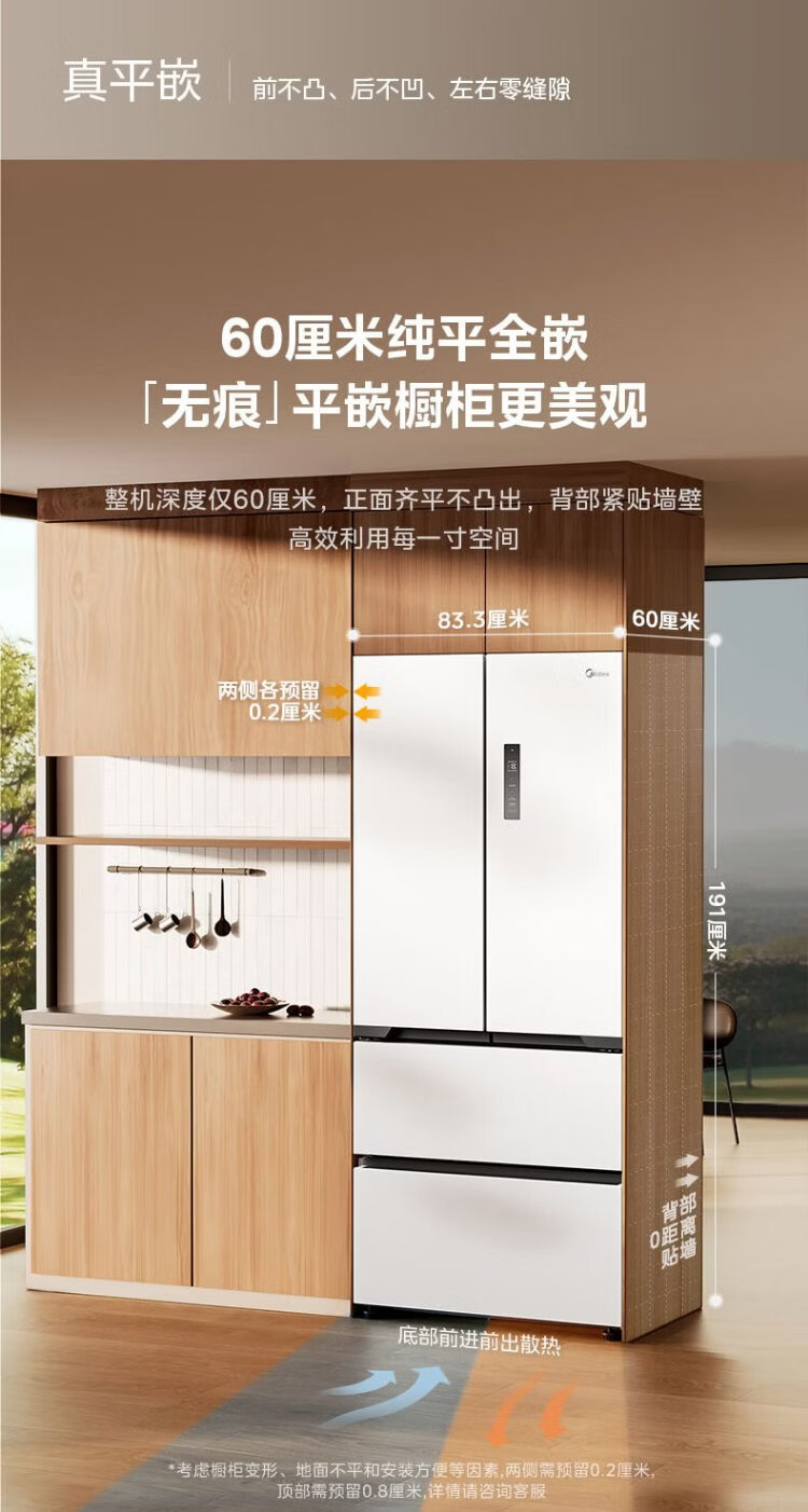 Midea Zhenxiang 508L French four-door refrigerator ultra-thin zero-embedded dual system first-level energy efficiency large capacity trade-in white BCD-508WUFPZM (E) national subsidy