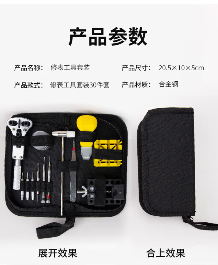 Fengshang 30-piece watch adjuster, watch strap removal tool, watch repair tool, complete set of clock and watch remover, cover opener, battery replacement