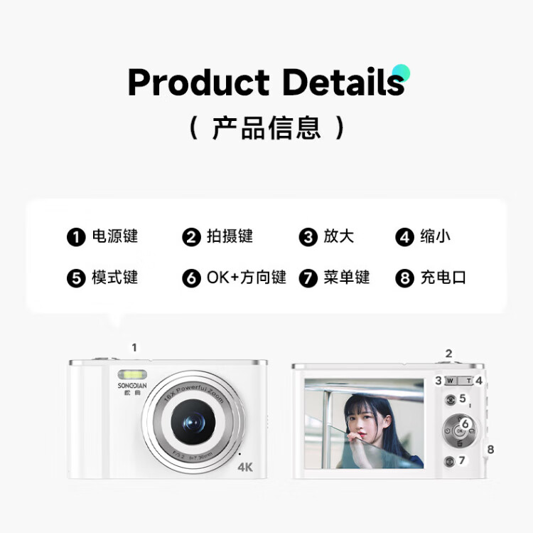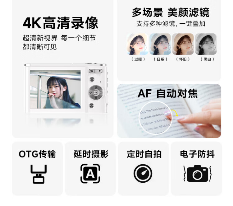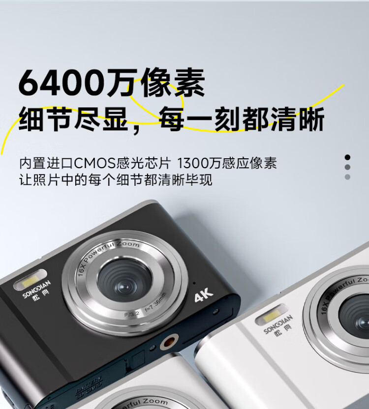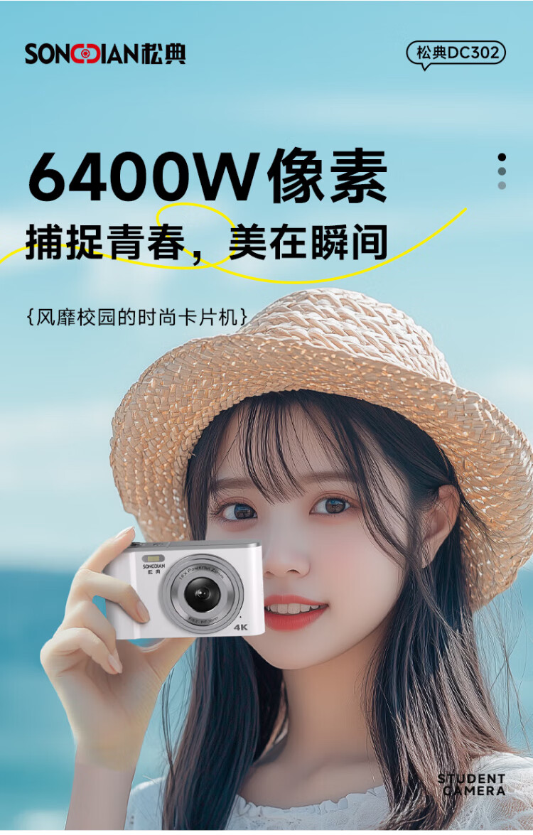 SONGDIAN digital student camera portable replaces CCD card machine vlog high-definition entry-level camera dc302 interstellar black AF focus flagship version + 64G memory