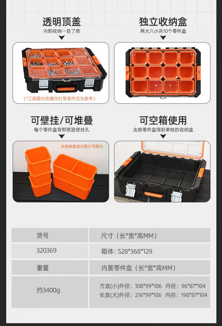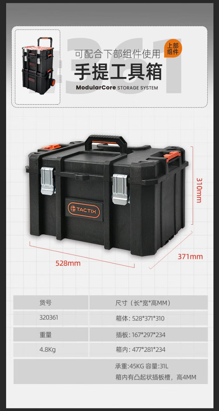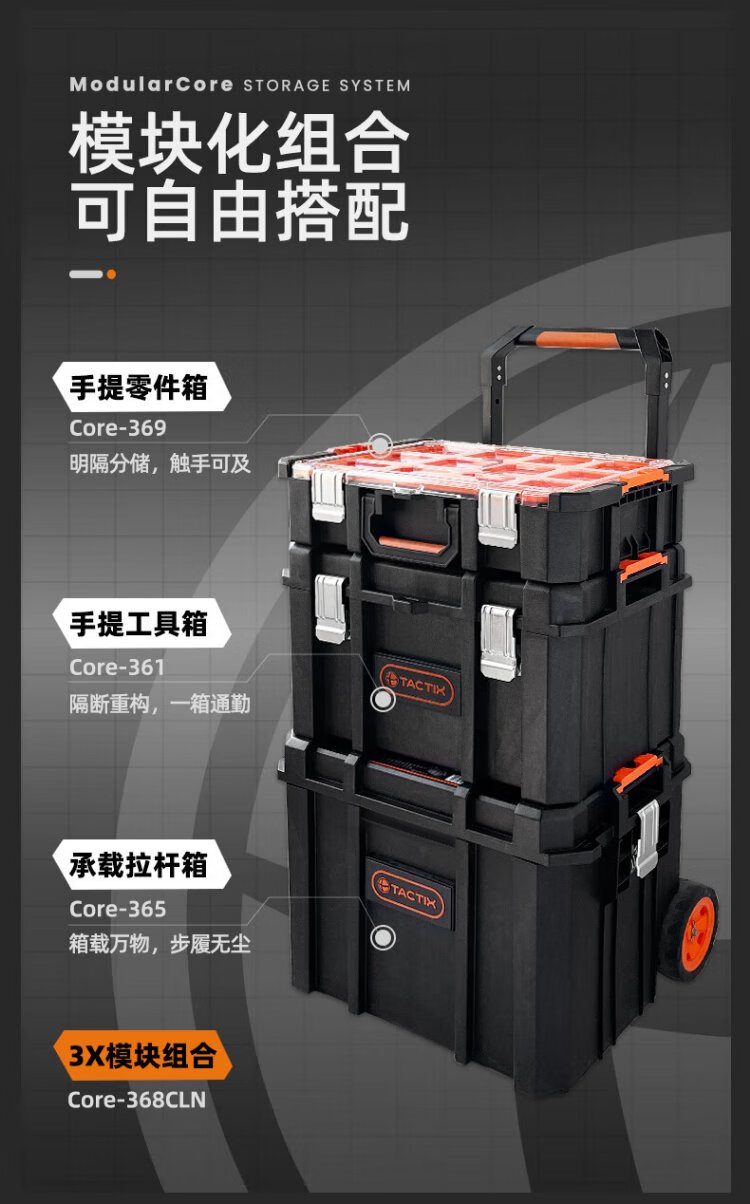 Tactix heavy-duty stacking tool box three-piece combination large-capacity storage box thickened industrial household 320368CLN