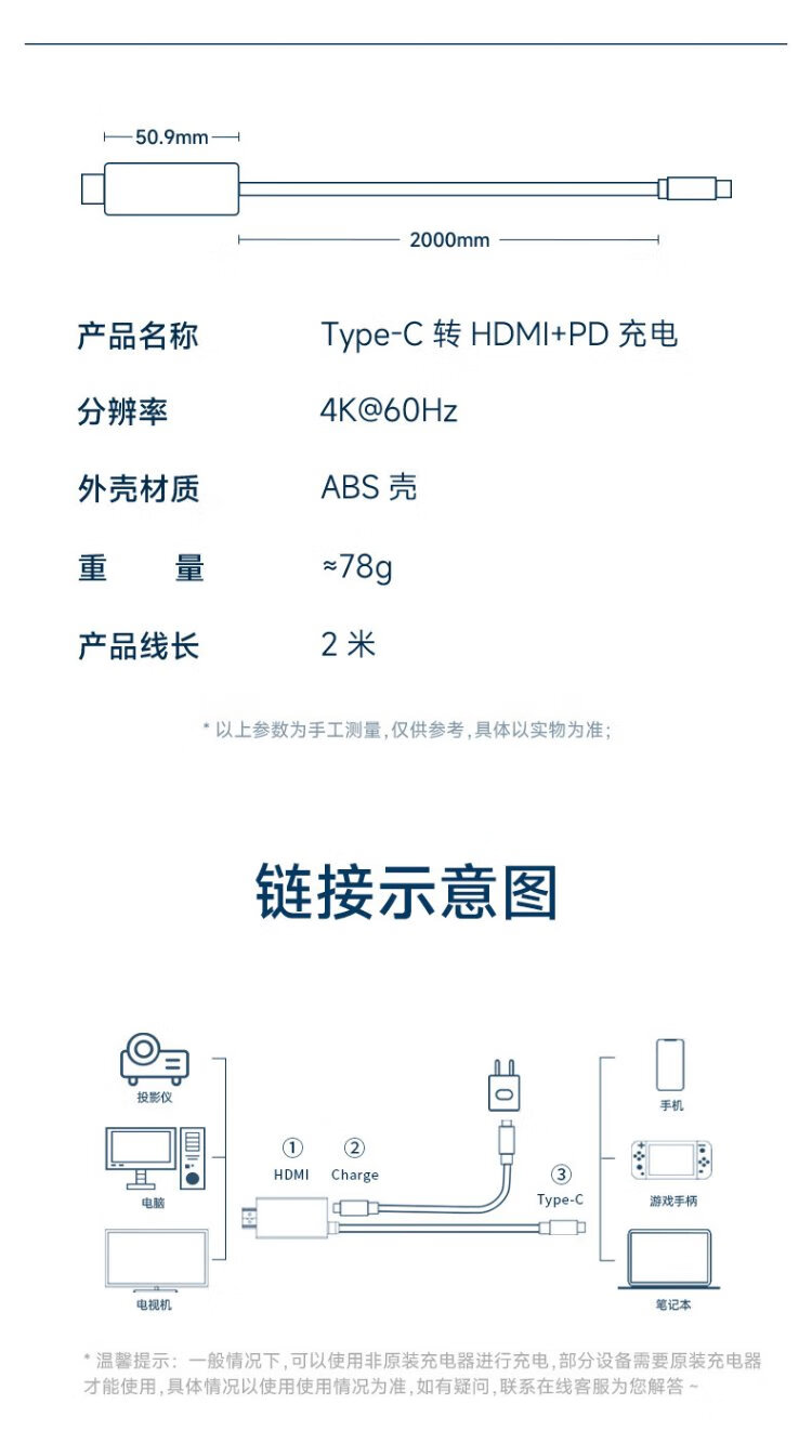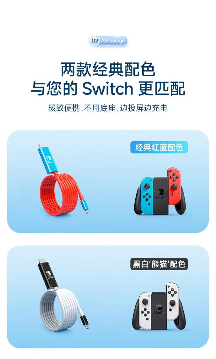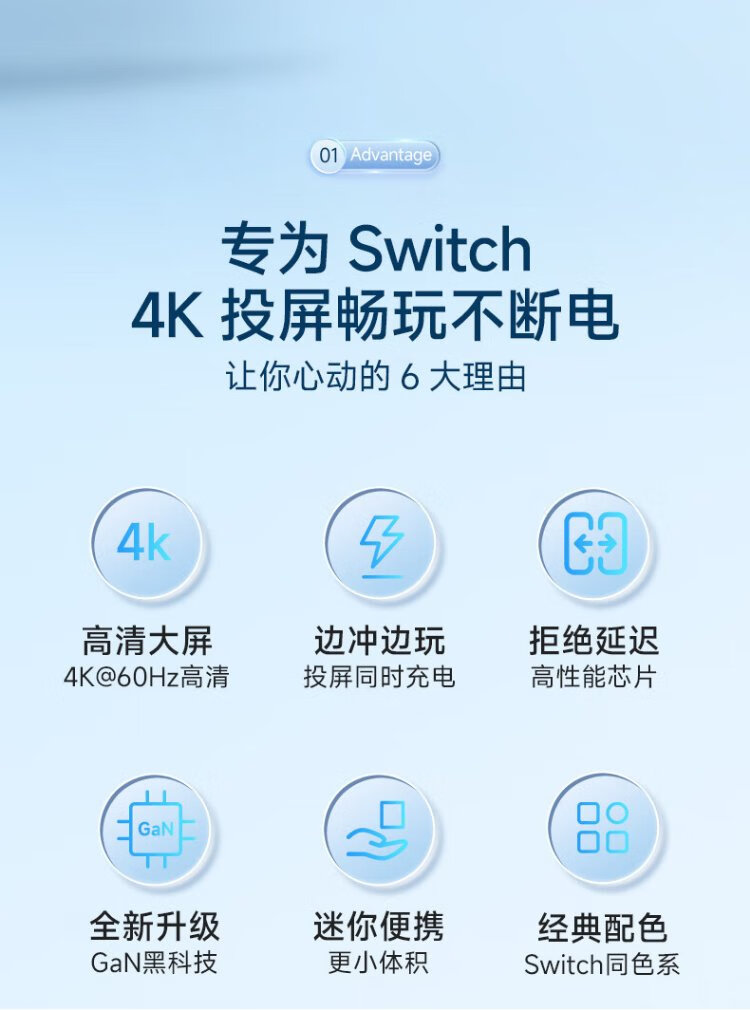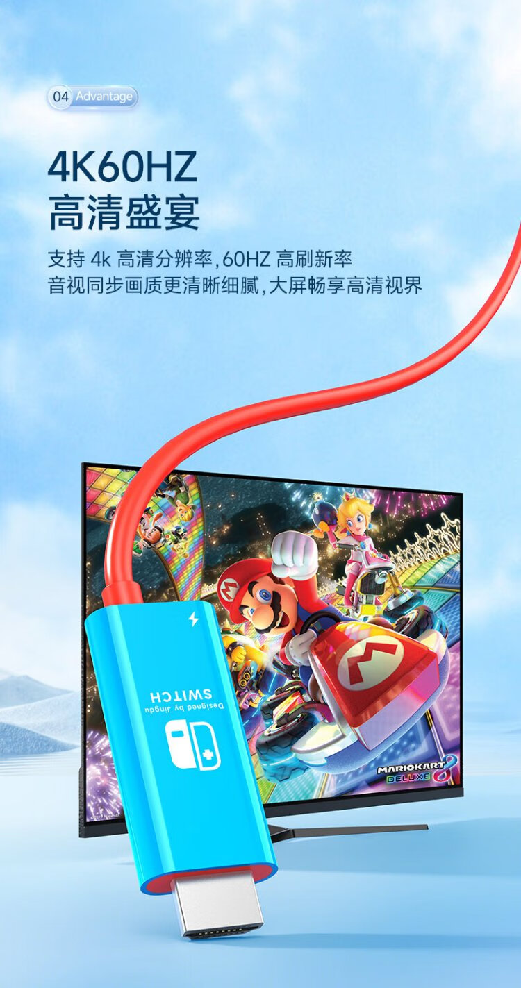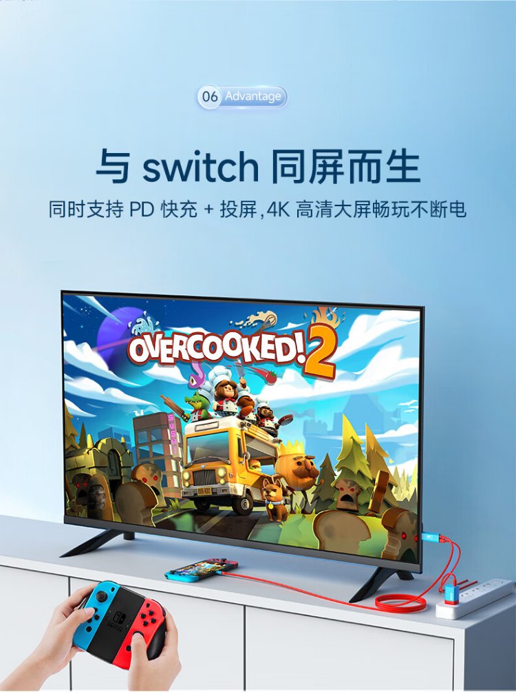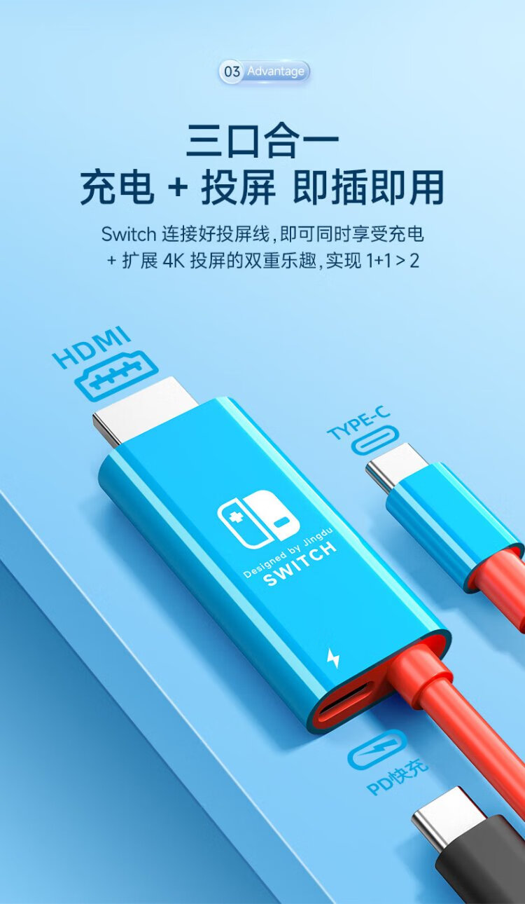 Jemdo suitable for Switch charger portable base projection cable 4K60Hz gallium nitride 33W fast charging Type-C to HDMI cable HD 60HZ compact and portable black and white