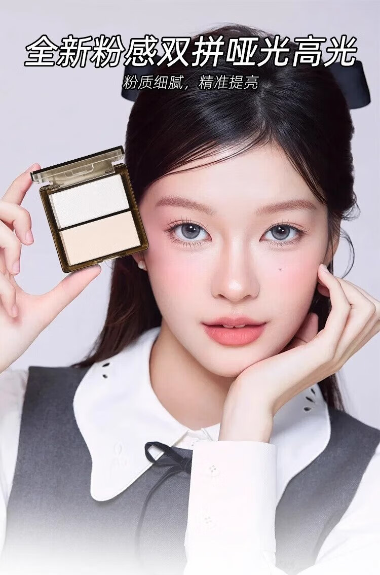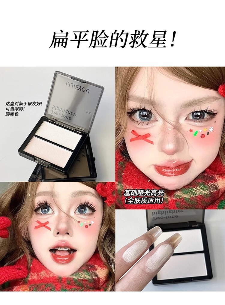 Gemeng two-color matte high-gloss trimming palette, long-lasting and sweat-proof, female students' all-in-one trimming palette, nude makeup, delicate and brightening skin tone