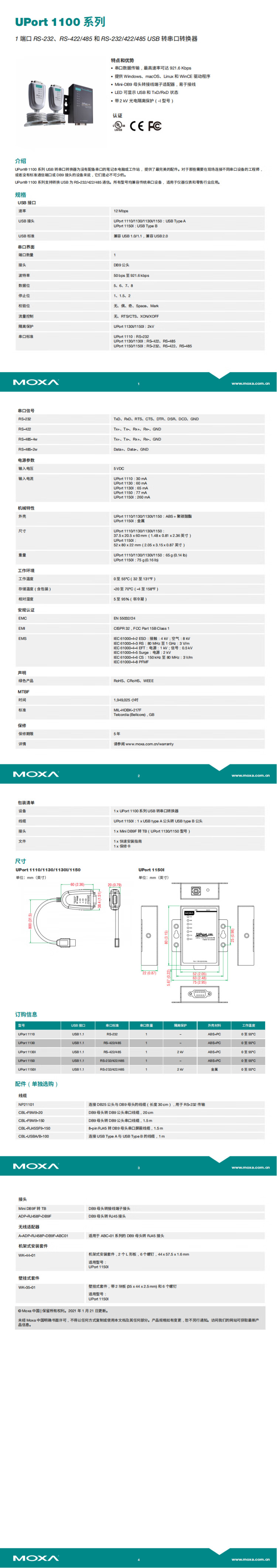 MOXA UPort 1110 1-port RS-232 USB to serial converter