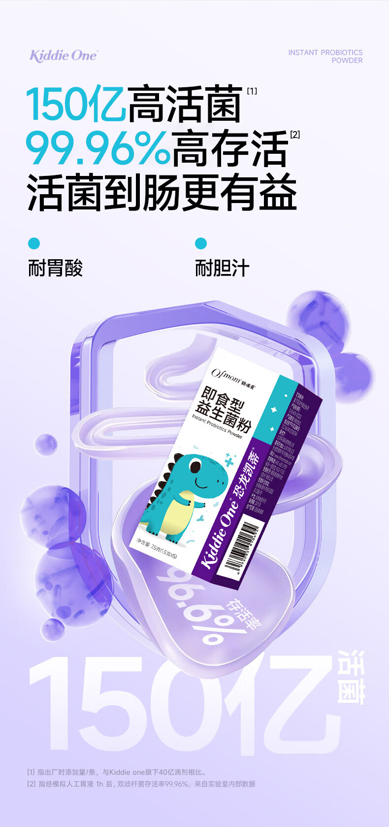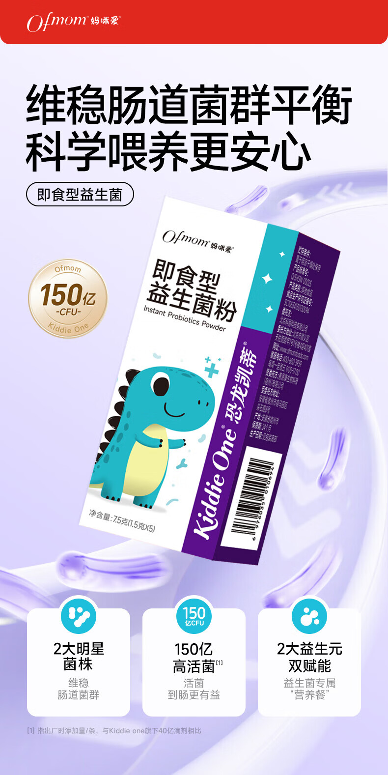 Mommy Loves Little Dinosaur contains 5 probiotic strains for infants and young children: GG + Bifidobacterium animalis Bb-12 to protect the intestines