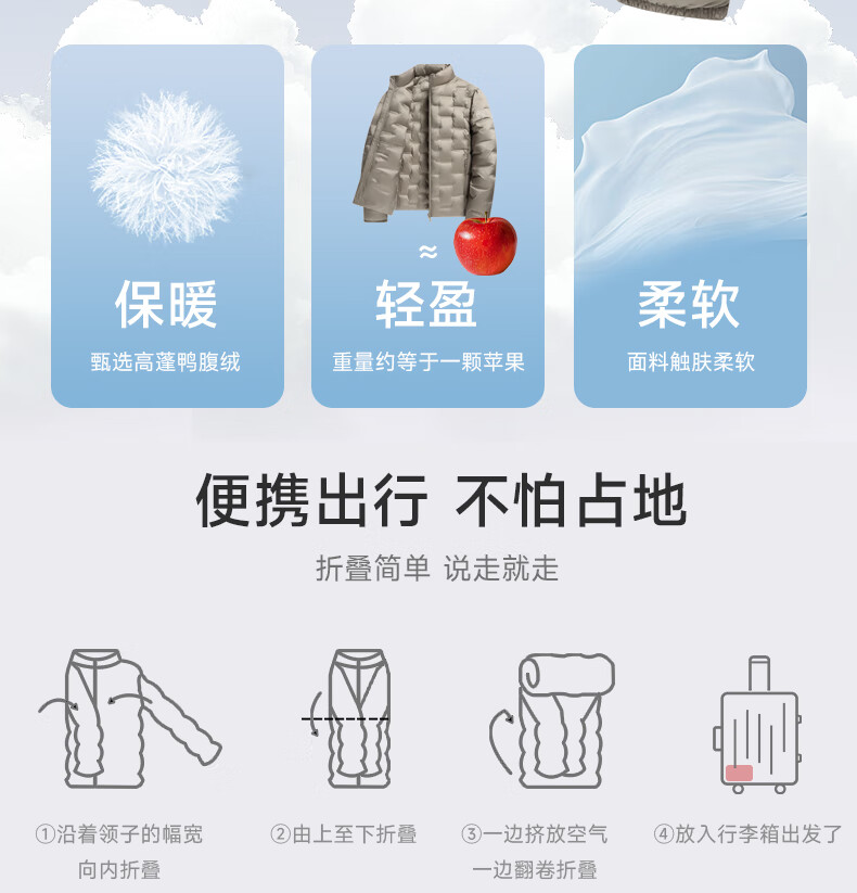 Flying in the Snow 90 Down, Seamless Lamination, Lightweight Down Jacket, Same Style for Men and Women, Stand Collar, Fashionable Casual Autumn and Winter Warm Couple Jacket