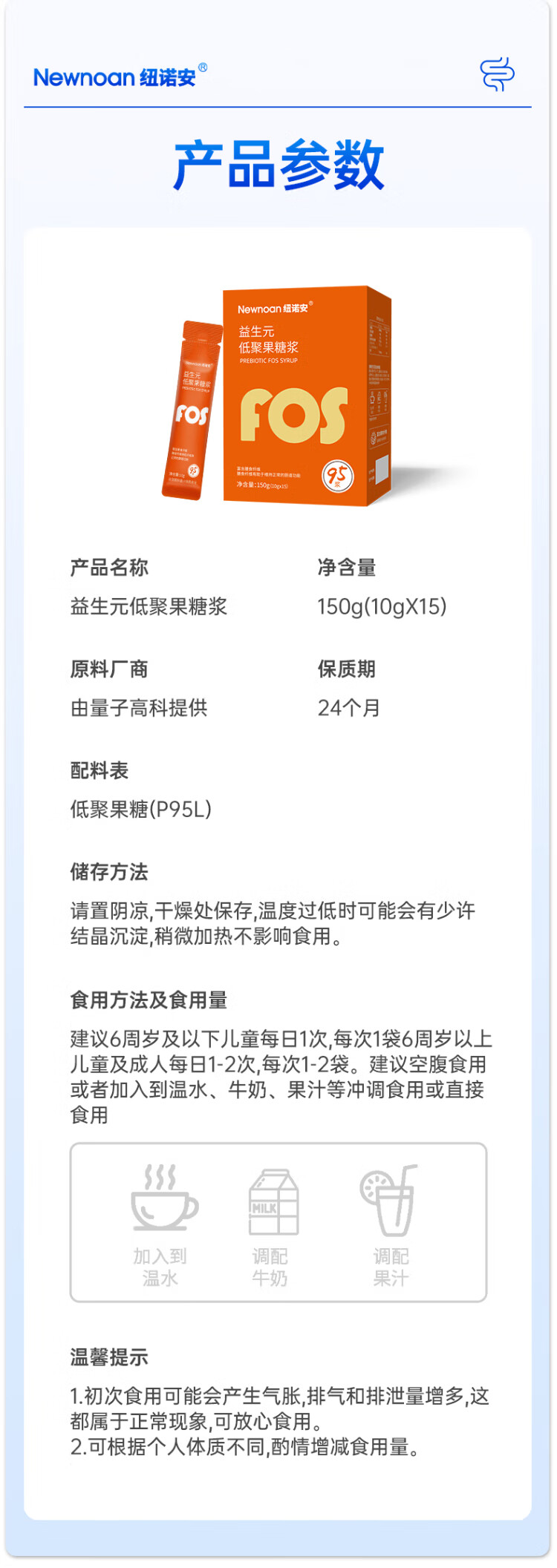 Nunoan prebiotic oligofructose syrup (95 slurry) water-soluble dietary fiber for infants and children pregnant women 10g*15 strips