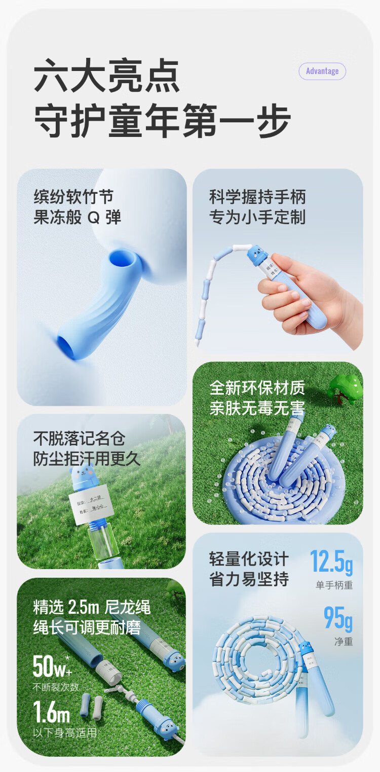 Keep bamboo skipping rope children's skipping rope 3-6 years old kindergarten special cartoon bear primary school student skipping rope bubble blue